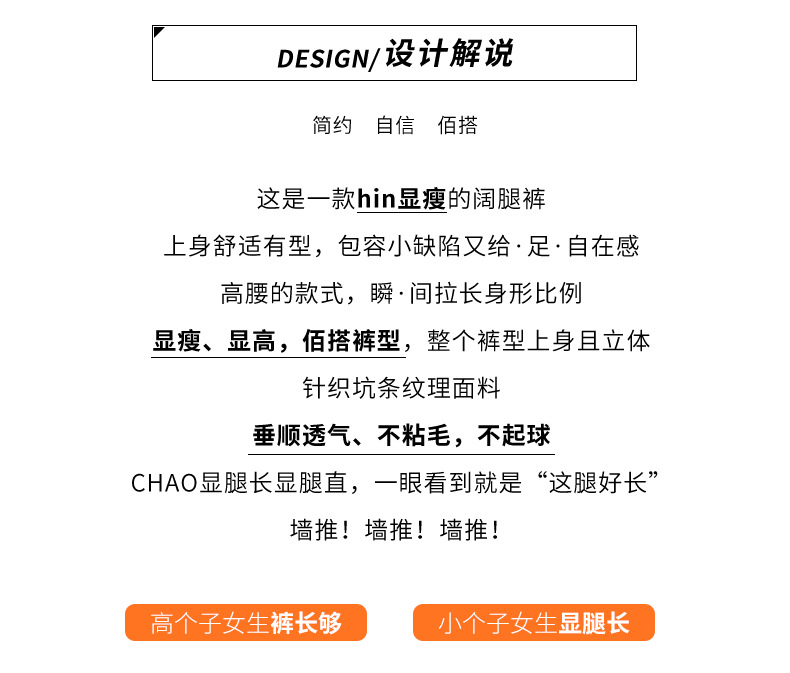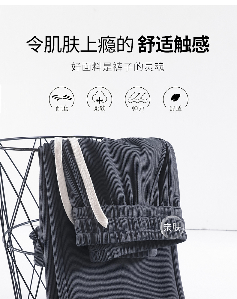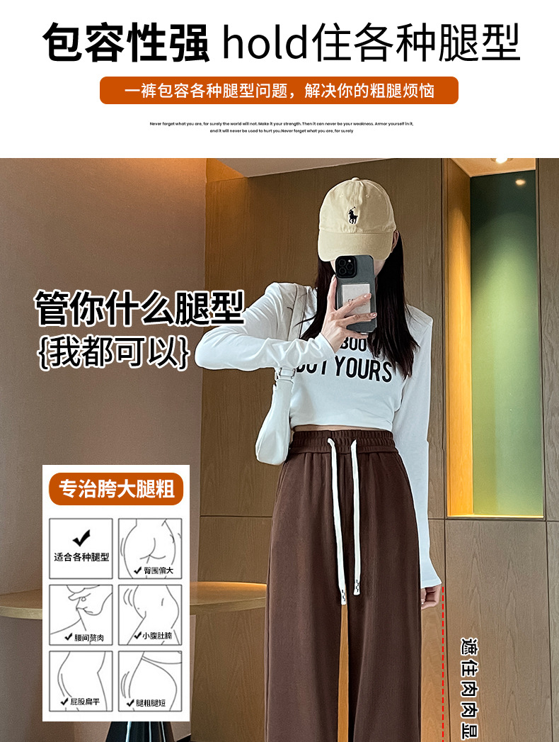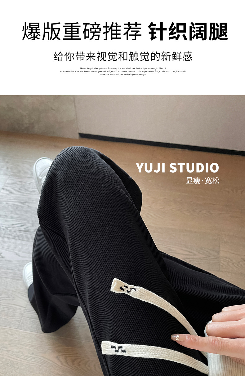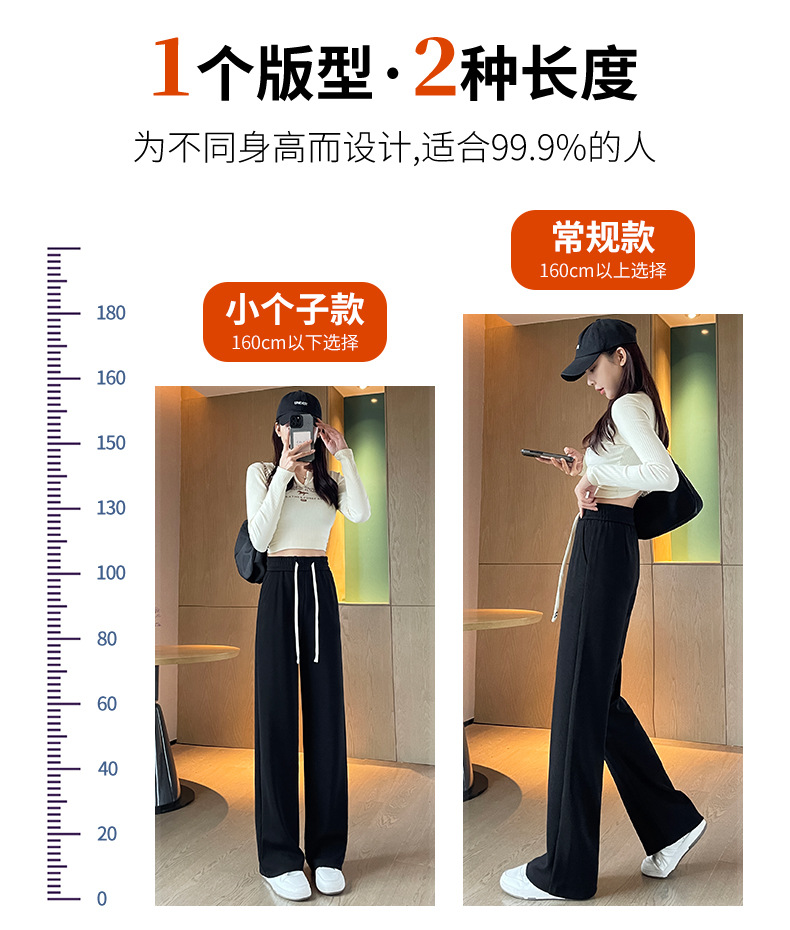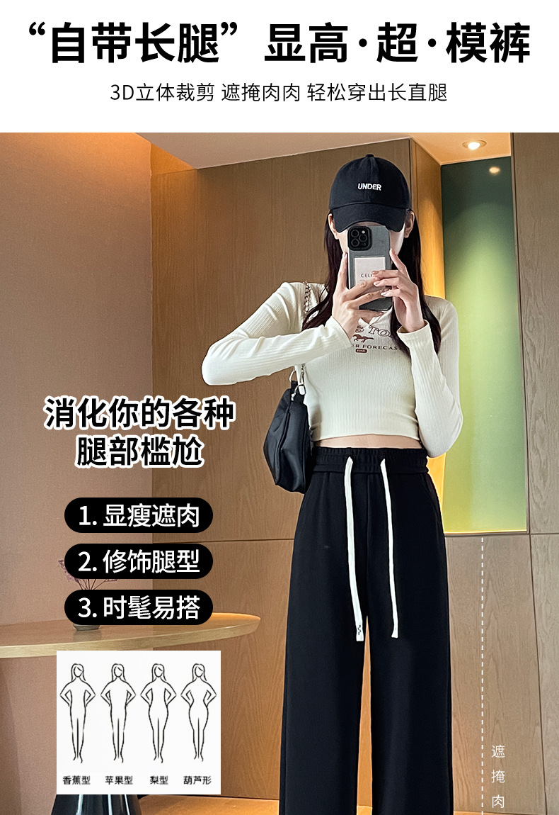 Autumn high-end casual pants, stretched-waist, wide-leg pants, women's drawstring, slimming and leg-enhancing long women's pants