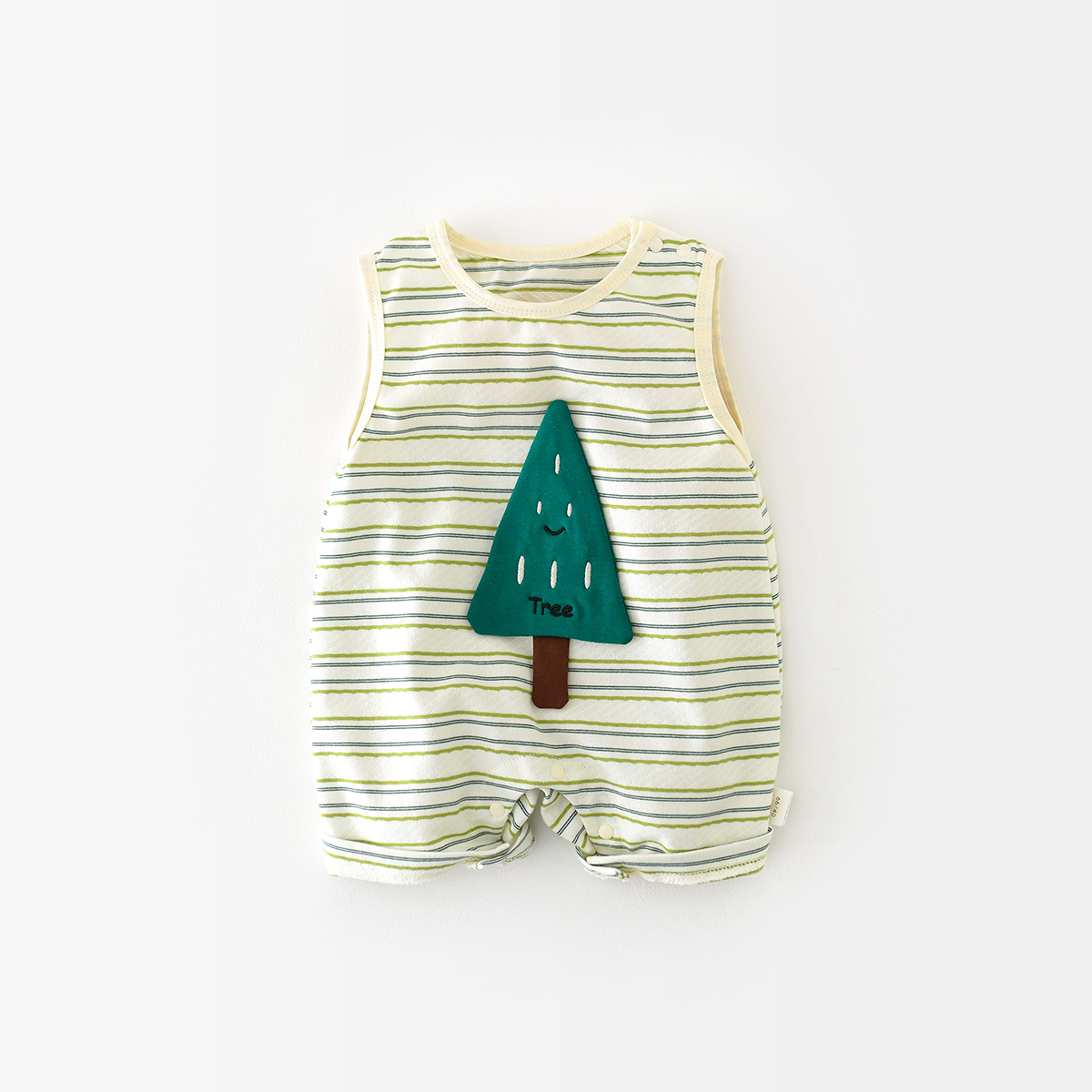 Baby jumpsuit, summer version of Korean green striped cartoon little tree cool newborn sleeveless hatchet for boys and girls