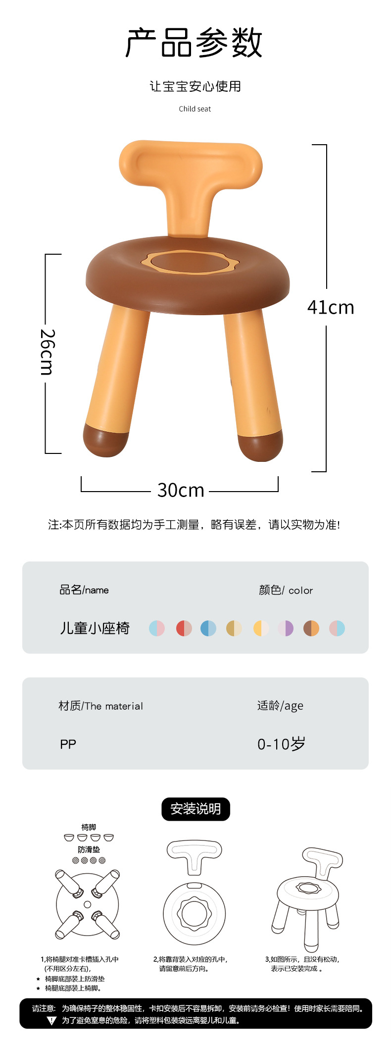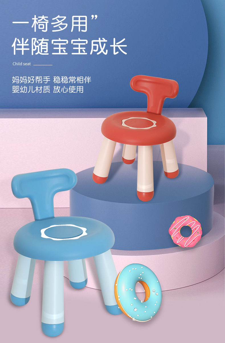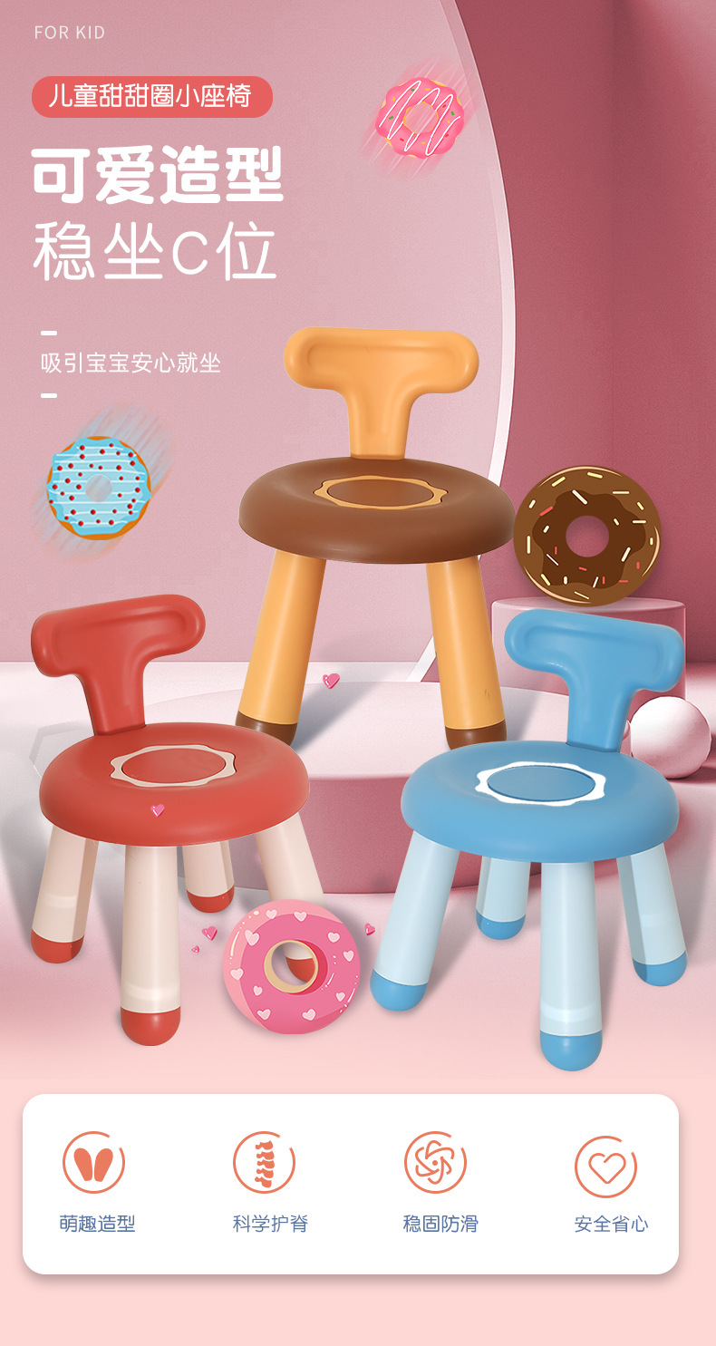 Donut children's chair, packaged in a single OPP bag. Product dimensions: Seat diameter 29, seat height 25, backrest height 40. 12 pieces per box