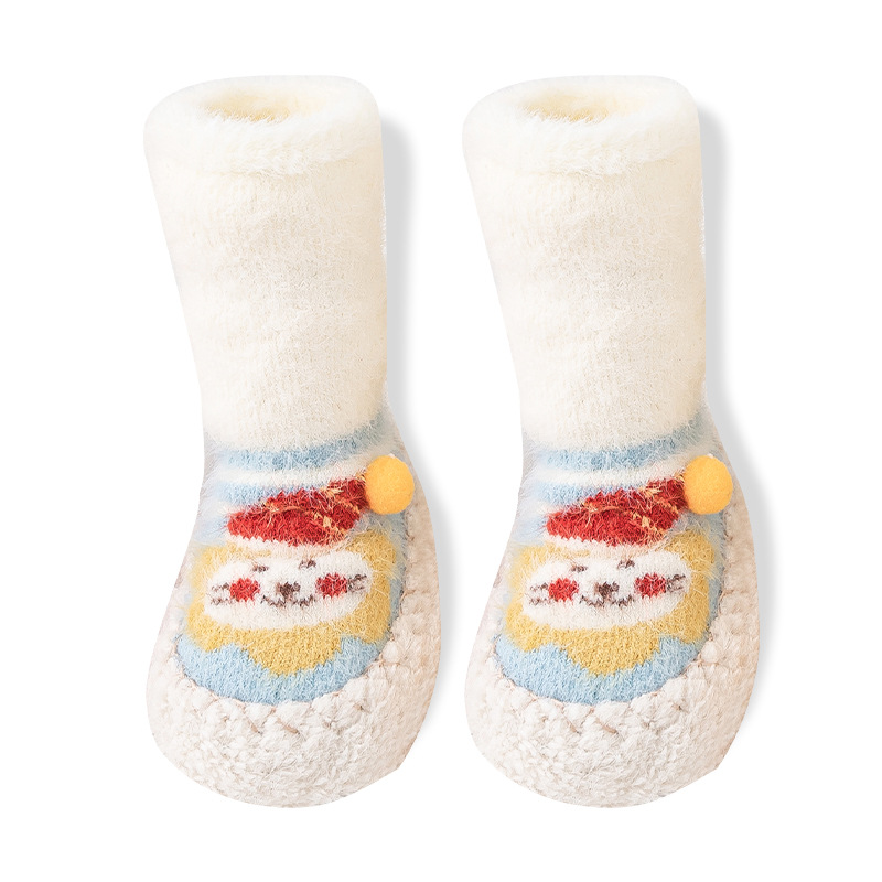 Baby socks and shoes for autumn and winter with fleece and thickening, baby floor shoes and socks, cartoon soft-soled shoes and socks for newborns, 0-1 year old