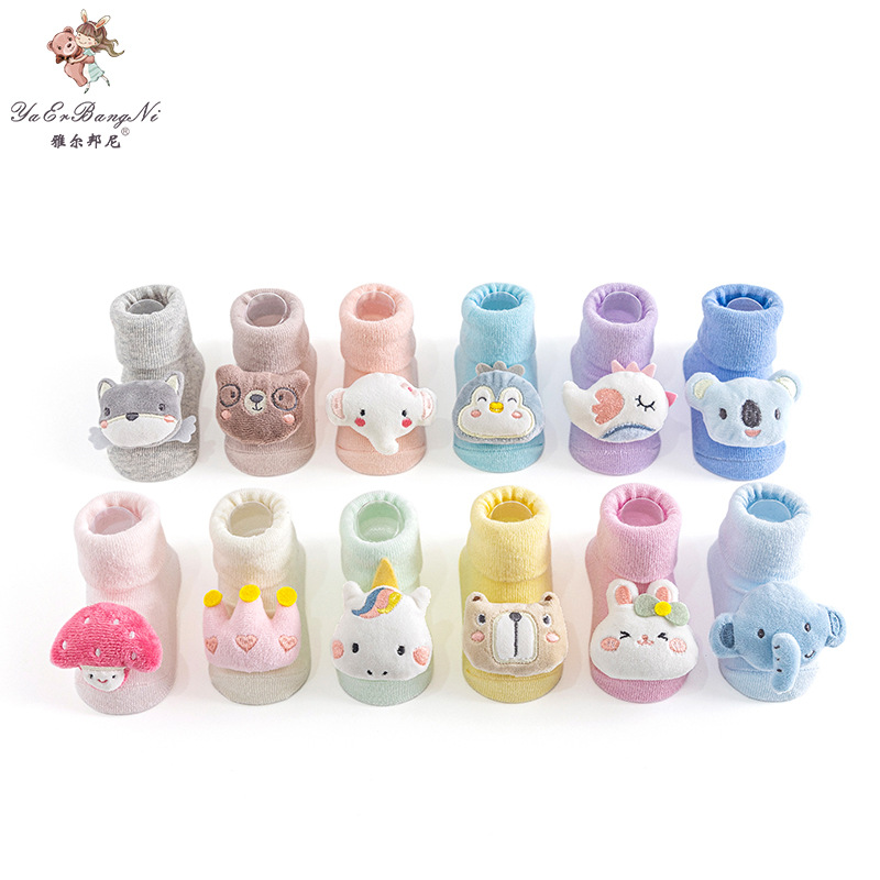 Baby socks, thin Class a children's socks, 0-9 months, cartoon doll socks, anti-slip with glue, soft floor for newborn babies