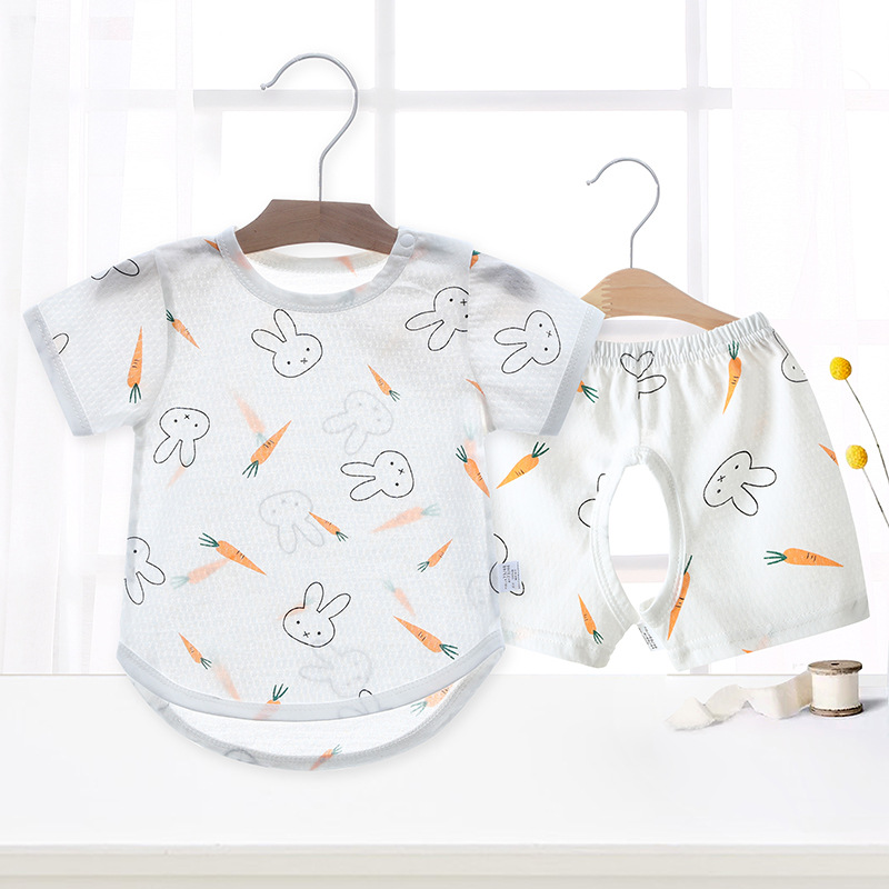 Baby summer thin set, boys' short-sleeved pure cotton open-cut two-piece clothes, girls' pajamas, shorts, summer wear