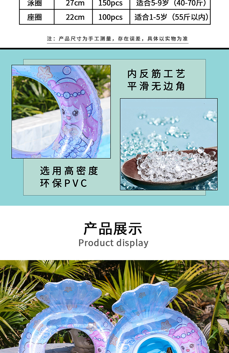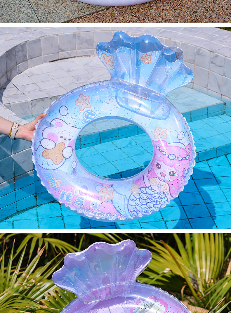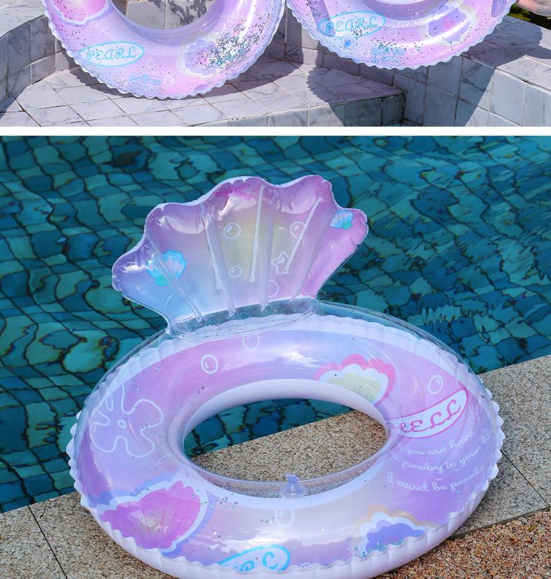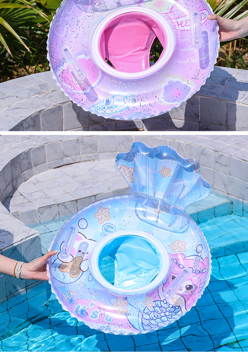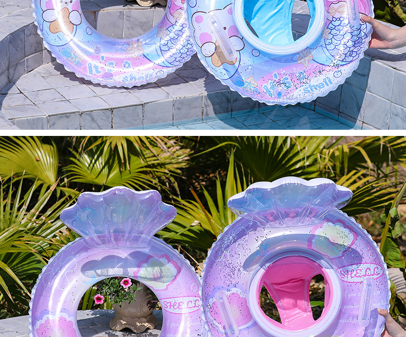 Backrest shell swimming ring, transparent handle, sequined children's sunken seat ring, cartoon print baby armpit ring