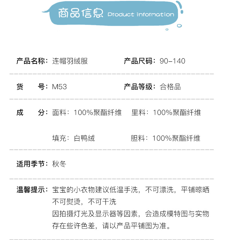 Bala 90% white duck down children's down jacket, short and stylish for boys and girls, baby and children's warm coat