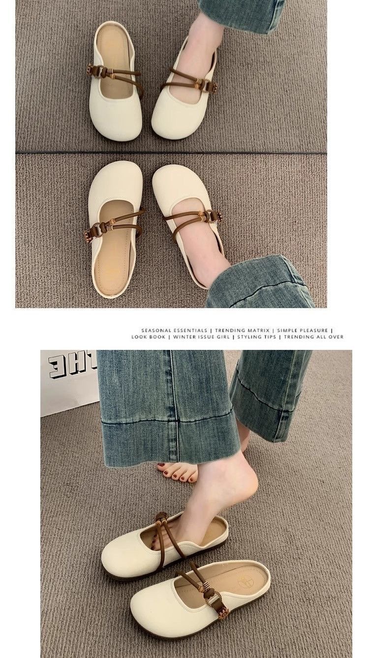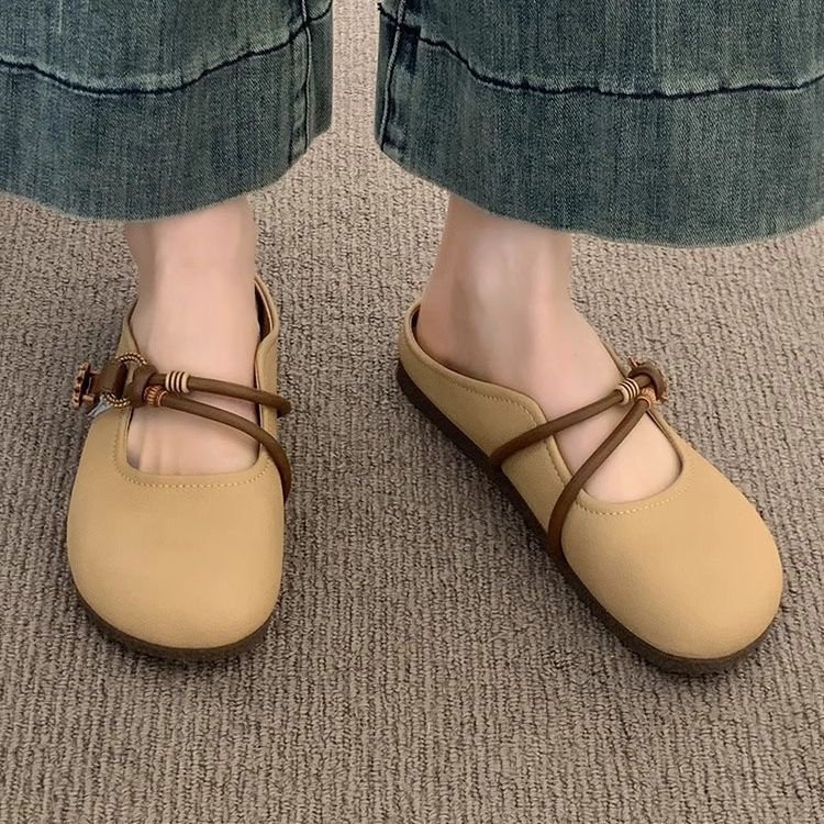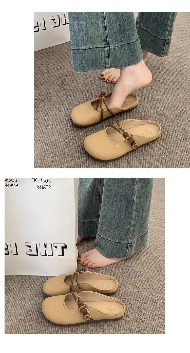 Baotou half-slipper women's summer outdoor wear 2025 new style super popular flat one-foot lazy half-support French cool slippers