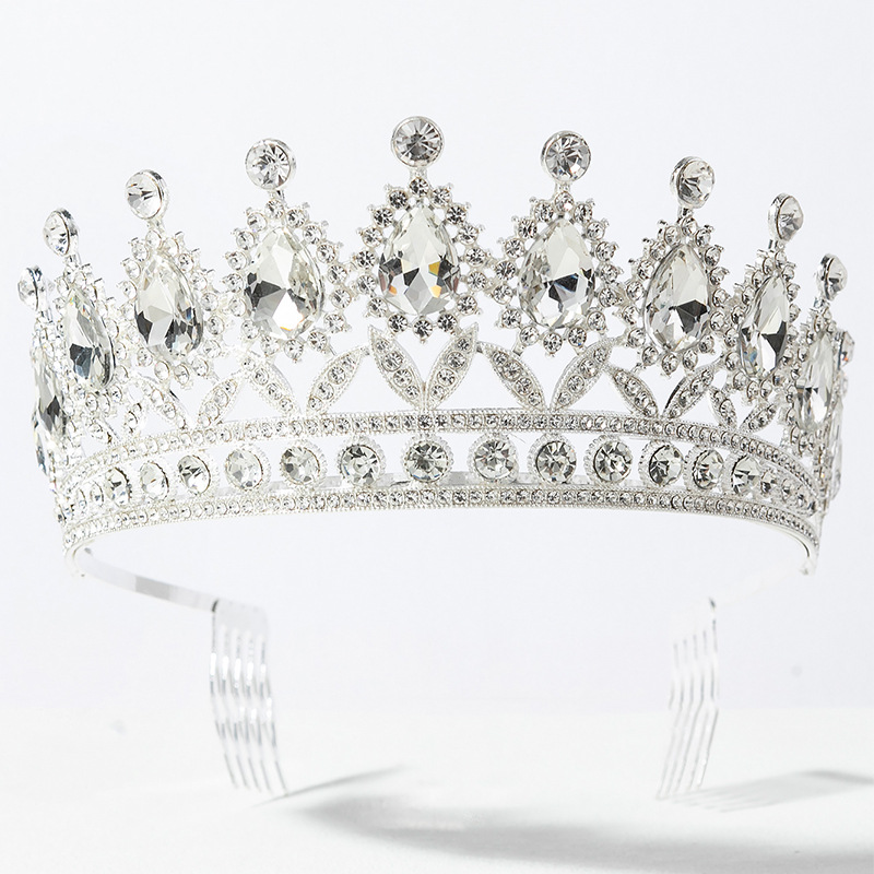 Baroque European and American bride headwear, water diamond comb crown headwear, AB water diamond talent show, grand crown wholesale