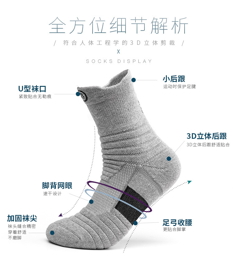 Basketball socks, men's thickened towel bottom loop socks, elite socks, medium long high-top running outdoor socks, sports socks
