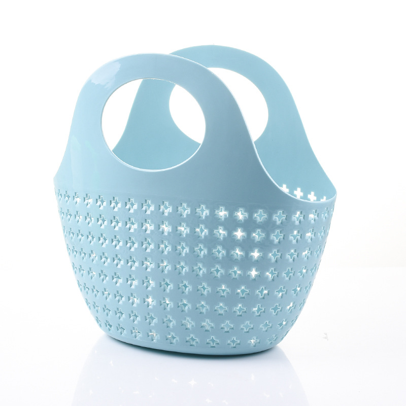 Bath basket, hand-held basket, soft plastic bathroom basket, women's washing and bathing blue storage basket, frame basket, foldable for bathing