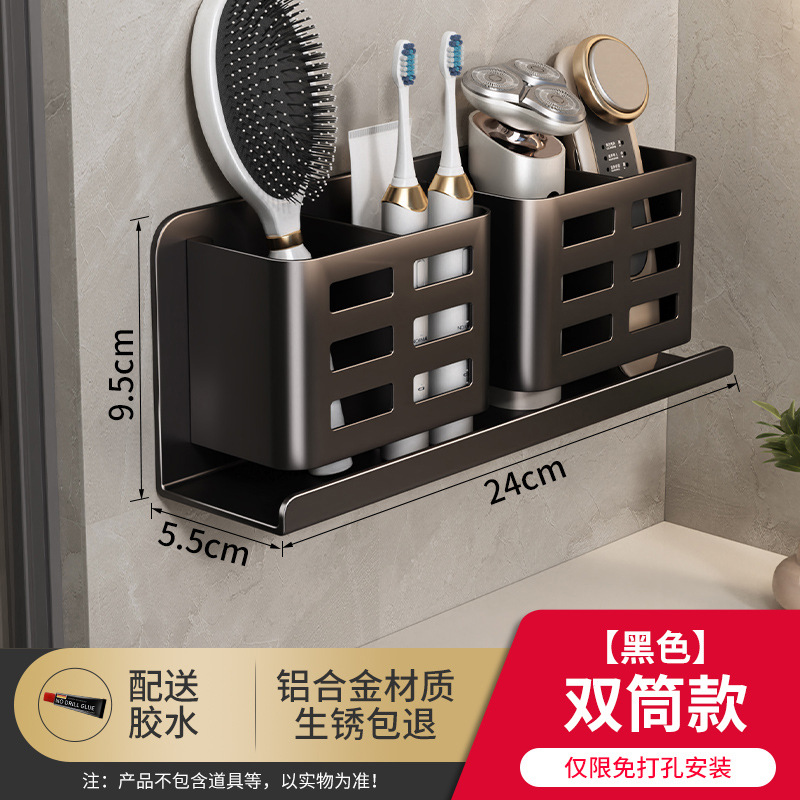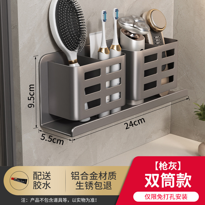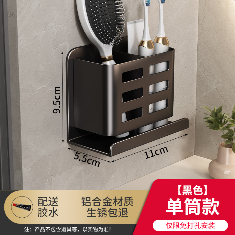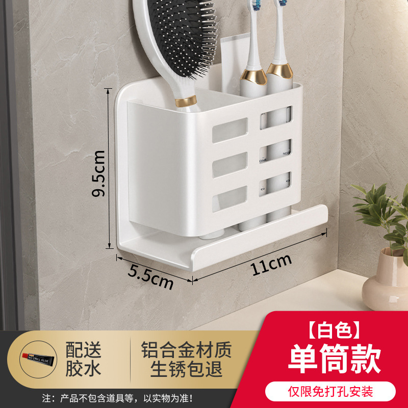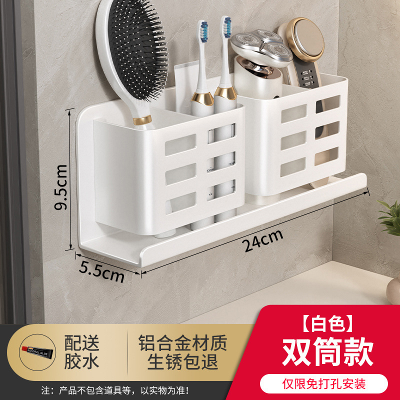 Bathroom comb storage rack, bathroom wall-mounted toilet without drilling holes, cosmetics, razor, toothbrush and toothpaste storage cylinder