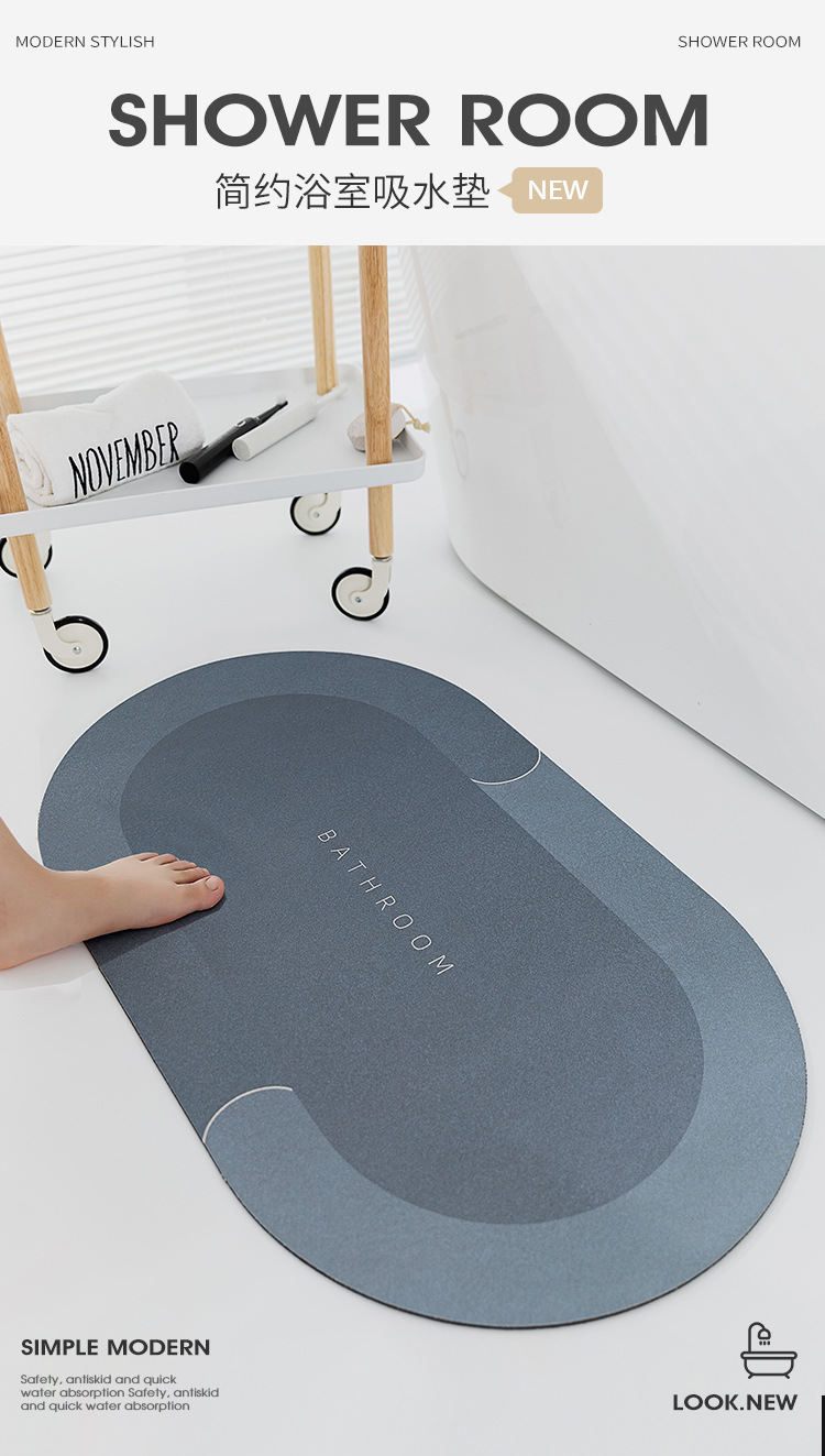 Bathroom diatom mud soft floor mat, water-absorbing and quick-drying lazy person's floor mat, anti-slip carpet and foot mat at the door of the toilet in the bathroom