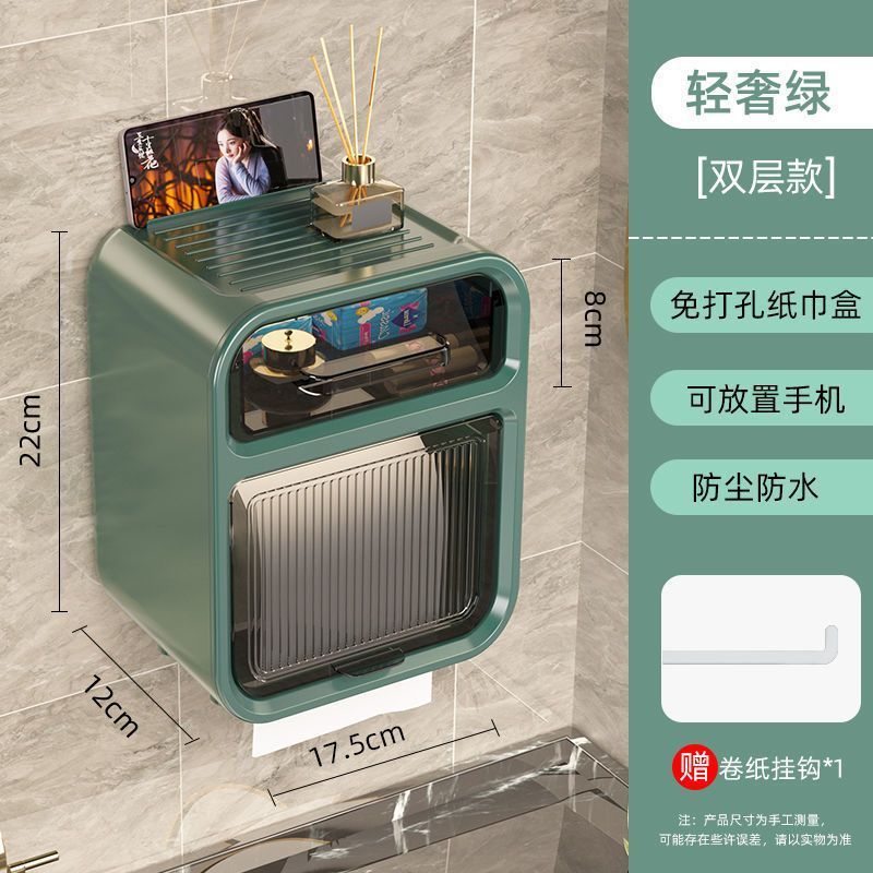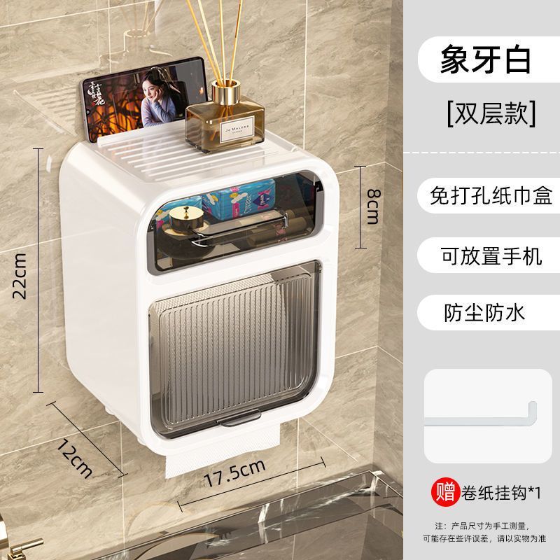 Bathroom tissue box without perforation, wall-mounted storage tissue box for bathroom toilet, multi-functional tissue box shelf