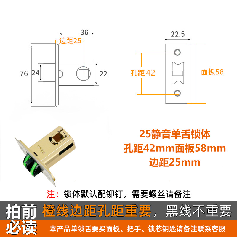 Bathroom, toilet lock tongue, indoor door lock 3035, 4045, 5060, 70 lock core, toilet flat tongue, three-pronged single tongue lock body