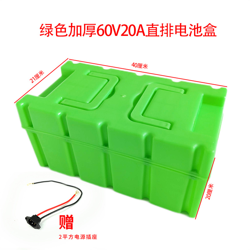The green thickened 60V20A battery box is placed in a straight row