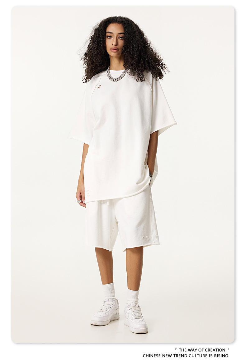 BE Men's Wear 2025 Summer American Retro Heavyweight washed batik Loop T-shirt Destroys the rolled-up large-sized short-sleeved men