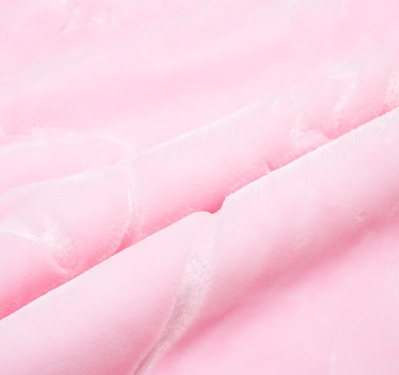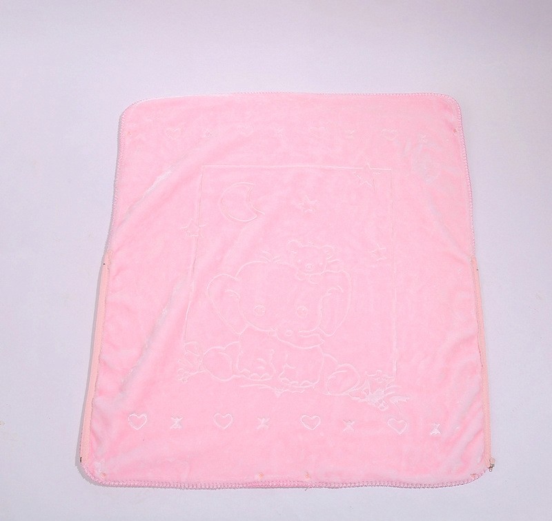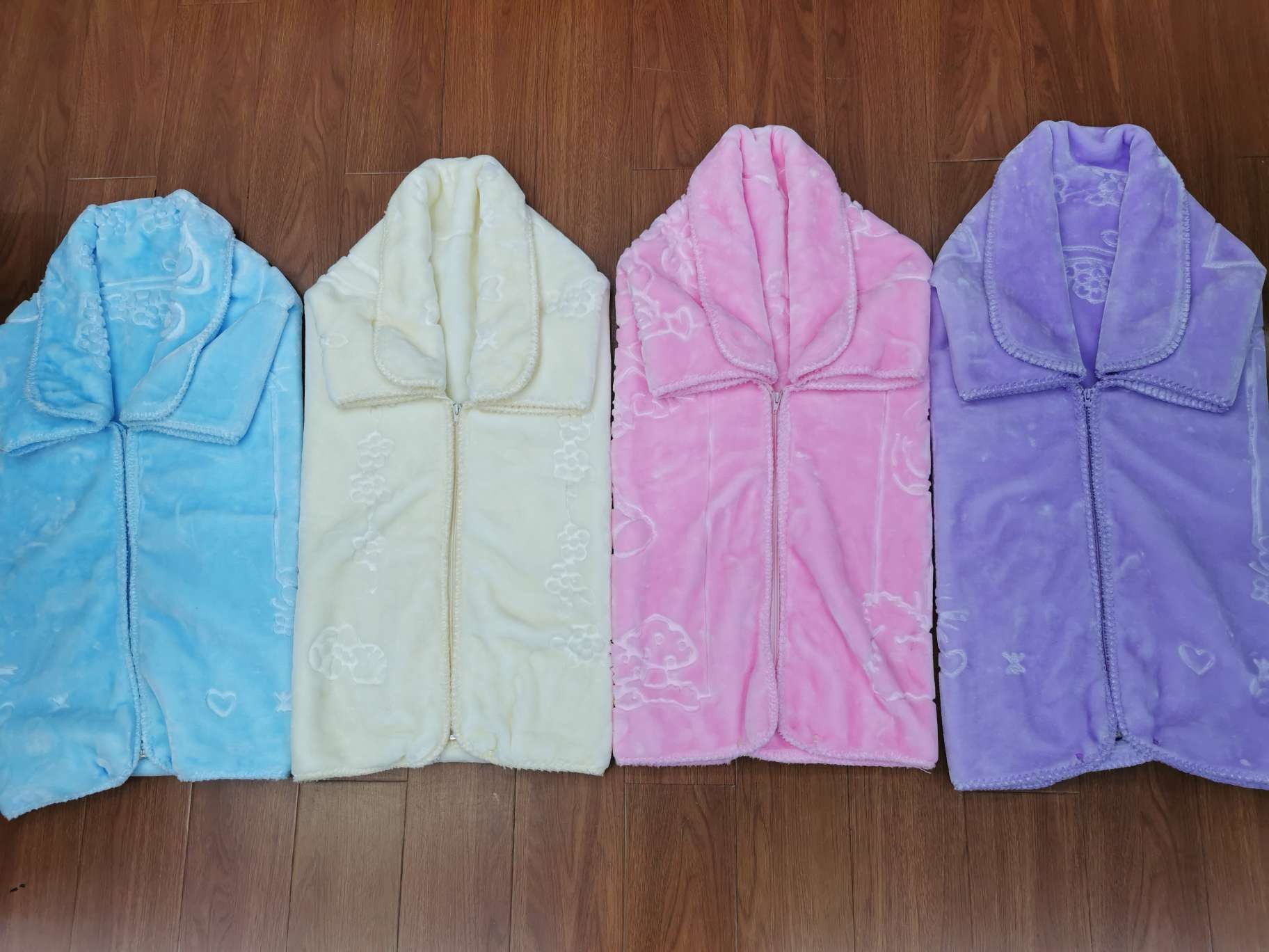 Children's plain embossed cloud blanket sleeping bag: Size: 80*90cm, weight: 500g, double-layer and double-sided embossed, with triangular pin locking, elegant and generous. Color: Blue, pink, yellow, purple. Other colors can also be customized according to the customer's requirements. Fabric features: anti-static washable fabric that can be directly in contact with the baby's skin. Suitable for spring, autumn and winter