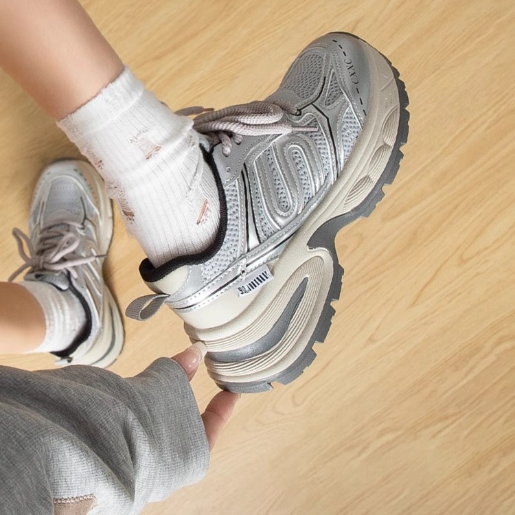 Benta Silver Dad Shoes for Women 2024 Spring and Autumn new thick-soled, height-increasing, casual and versatile streetwear sneakers