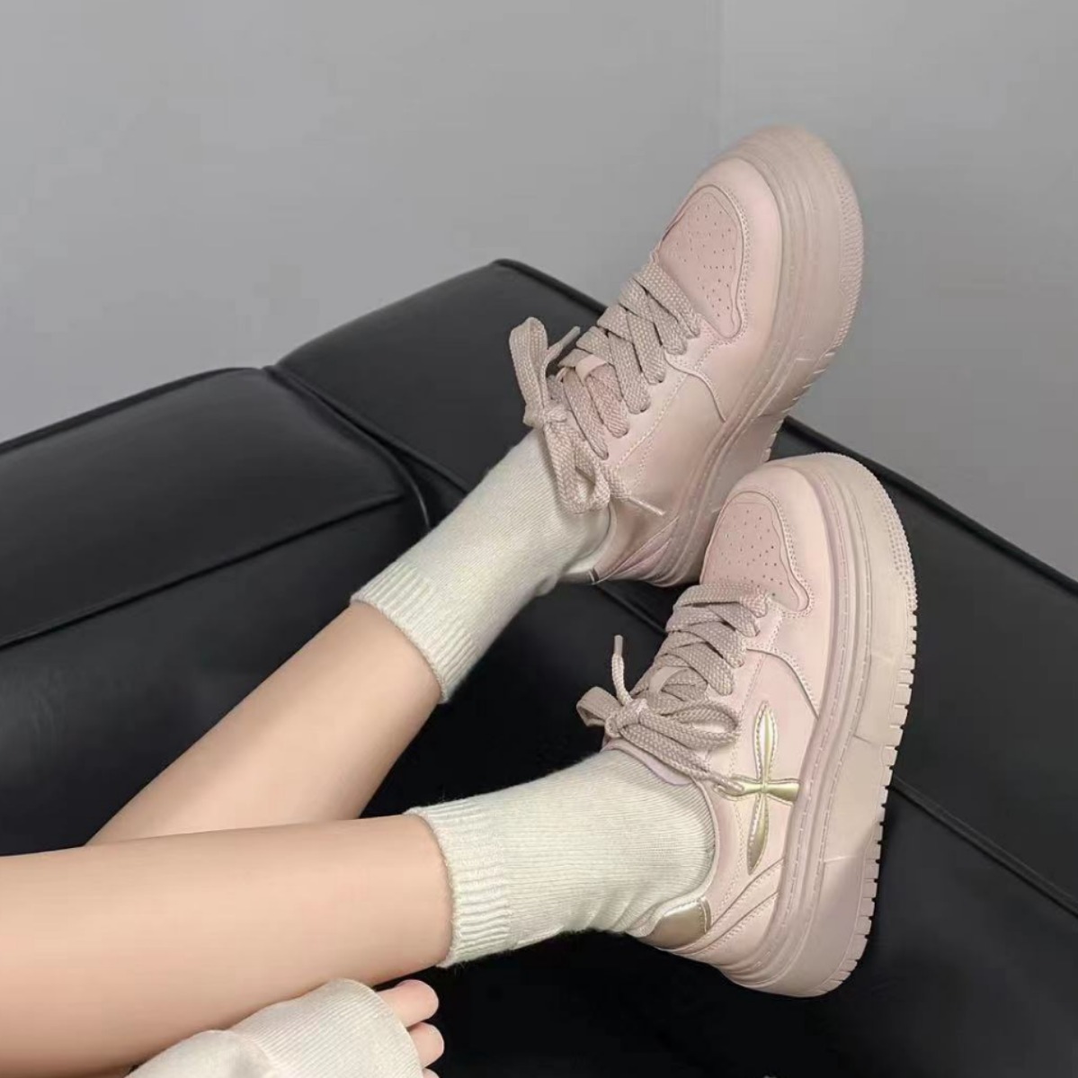 Benta's thick-soled best-selling white sneakers for women in the spring of 2024 feature a unique chanel-style board shoe design that is versatile and casual