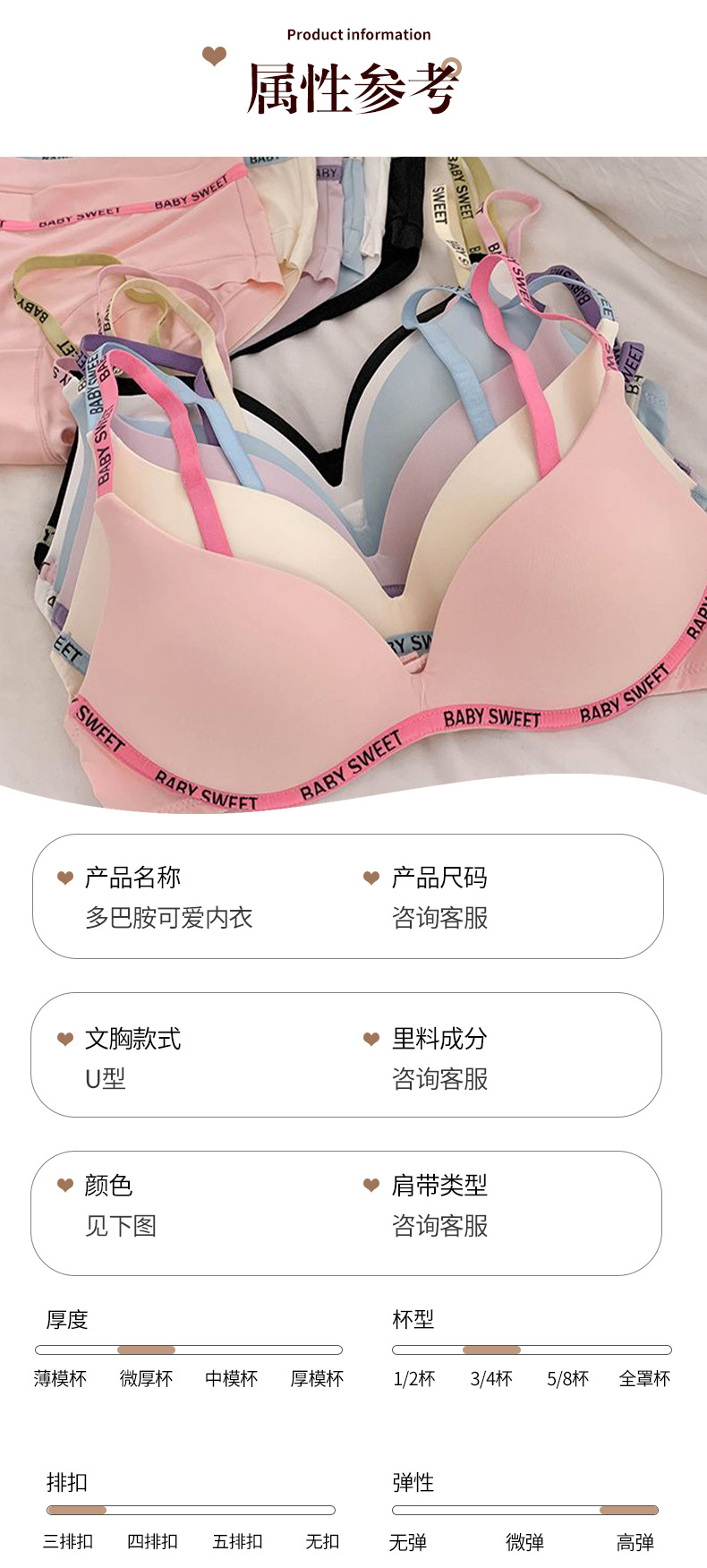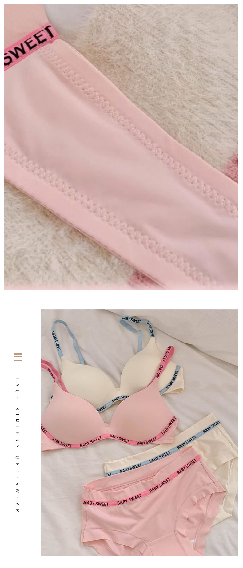 Best-selling cartoon sweet and spicy raspberry dopamine cute lingerie for women's small breasts, comfortable and slimming, seamless bra set