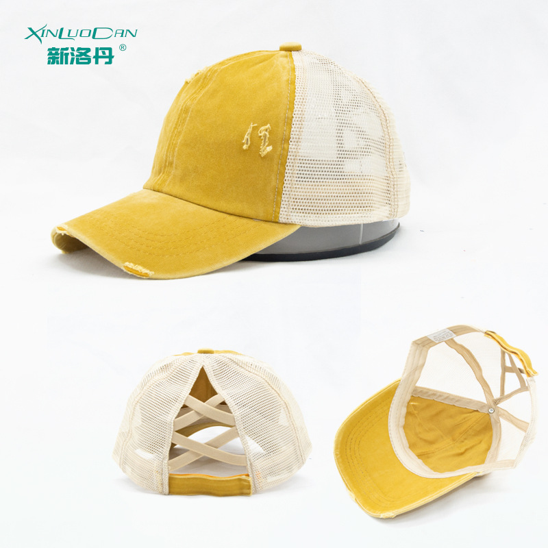 Best-selling factory direct sales and wholesale of cross-ponytail baseball caps for women's export, spring, summer and autumn sun protection, washable and perforated mesh caps