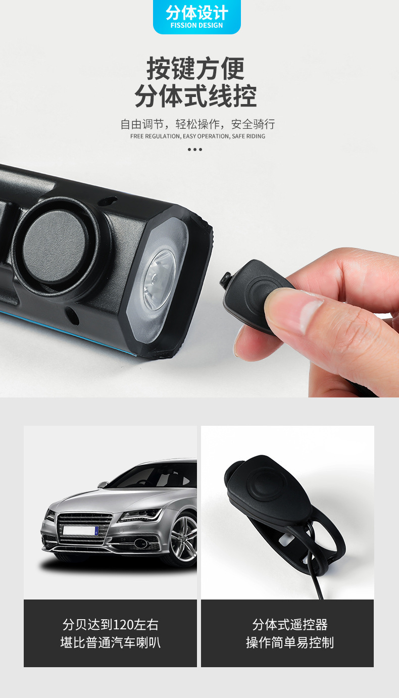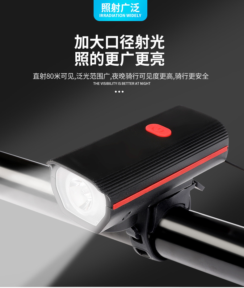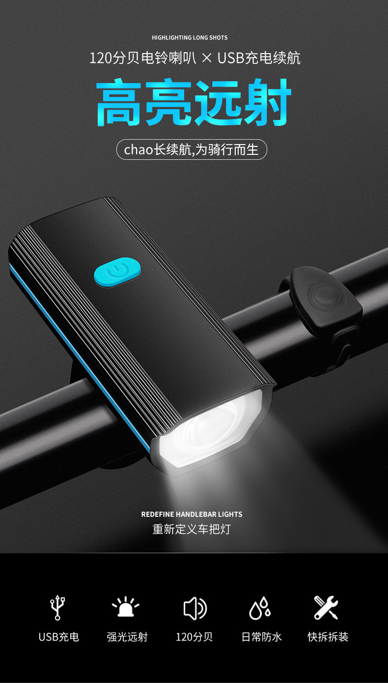 Bicycle headlight, night riding with horn, type-c rechargeable children's bicycle bell, night riding light, powerful flashlight equipment