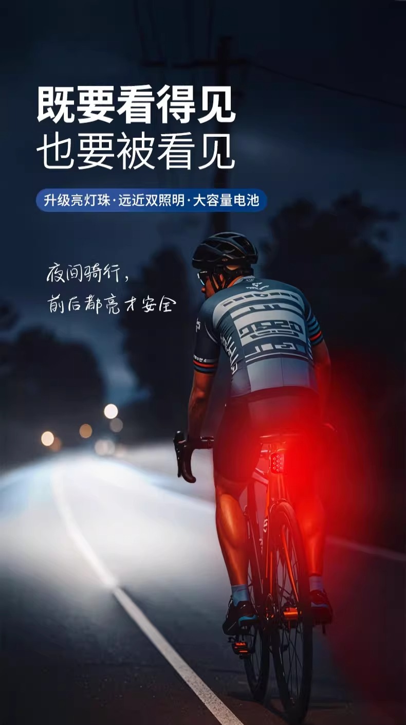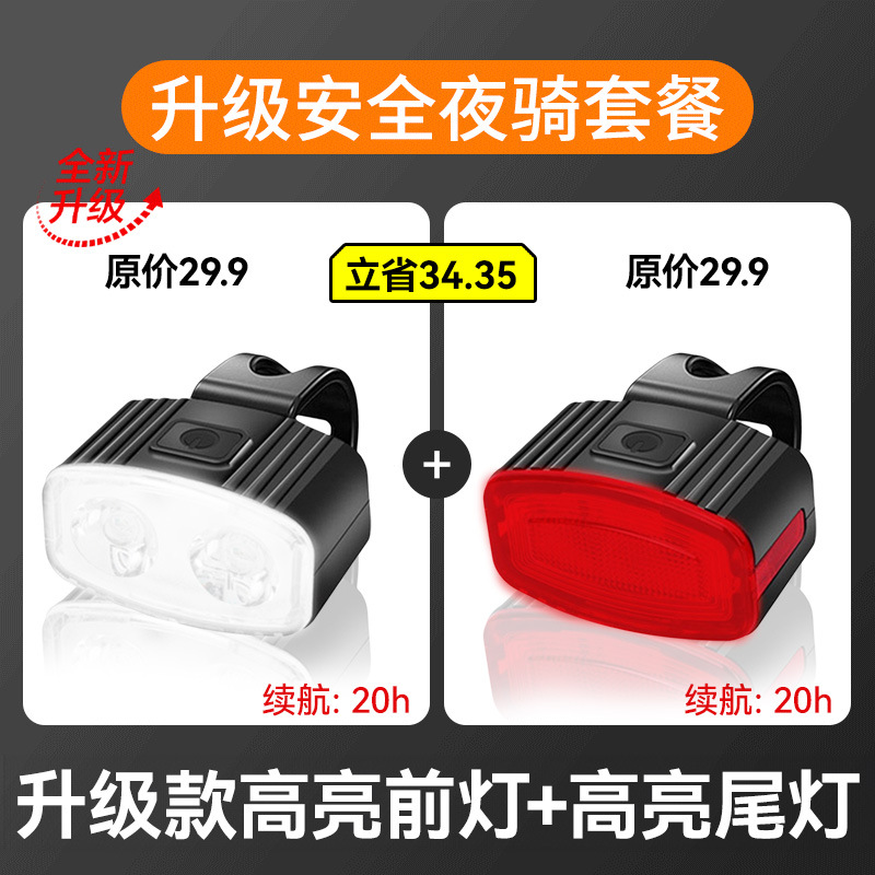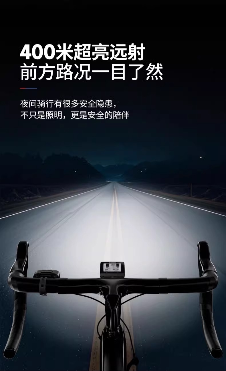 Flagship high-brightness headlights + flagship high-brightness taillights [visible from 400 meters, IPX4 water resistance, long-lasting battery life of 25 hours] comes with a data cable and thickened silicone strap