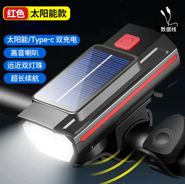 Bicycle light, solar horn, integrated headlight, mountain road bike, waterproof night ride, super bright flashlight, lighting lamp