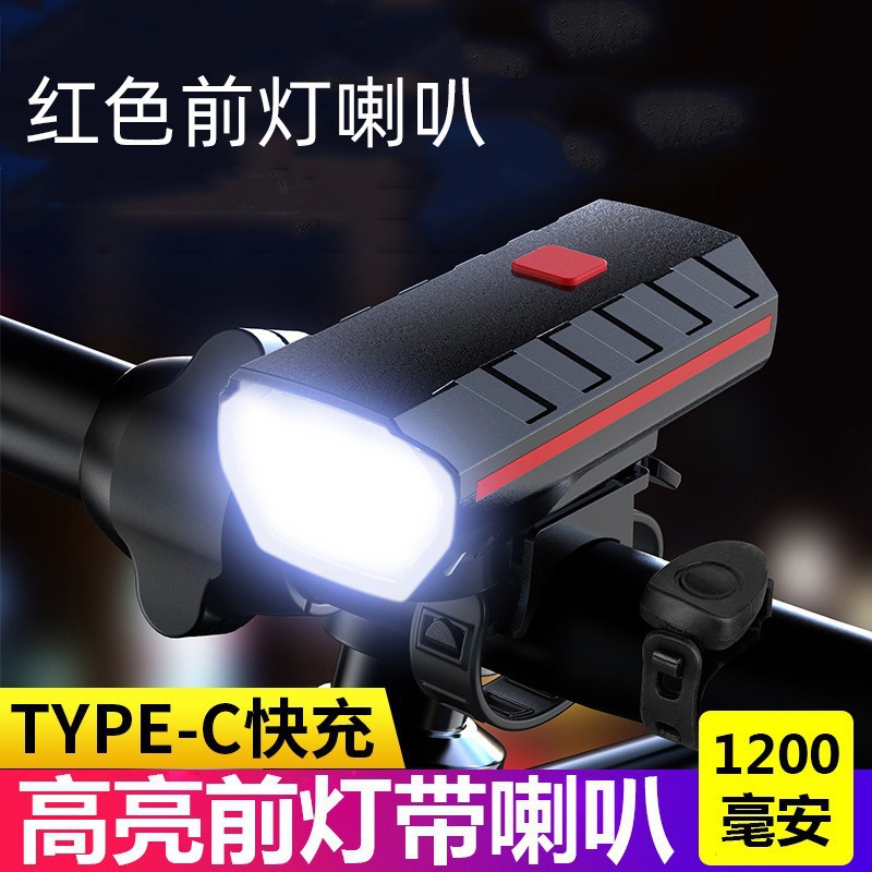 Bicycle light strip high-decibel horn, high and low beam high-brightness, solar-powered charging plastic outdoor cycling dual light horn
