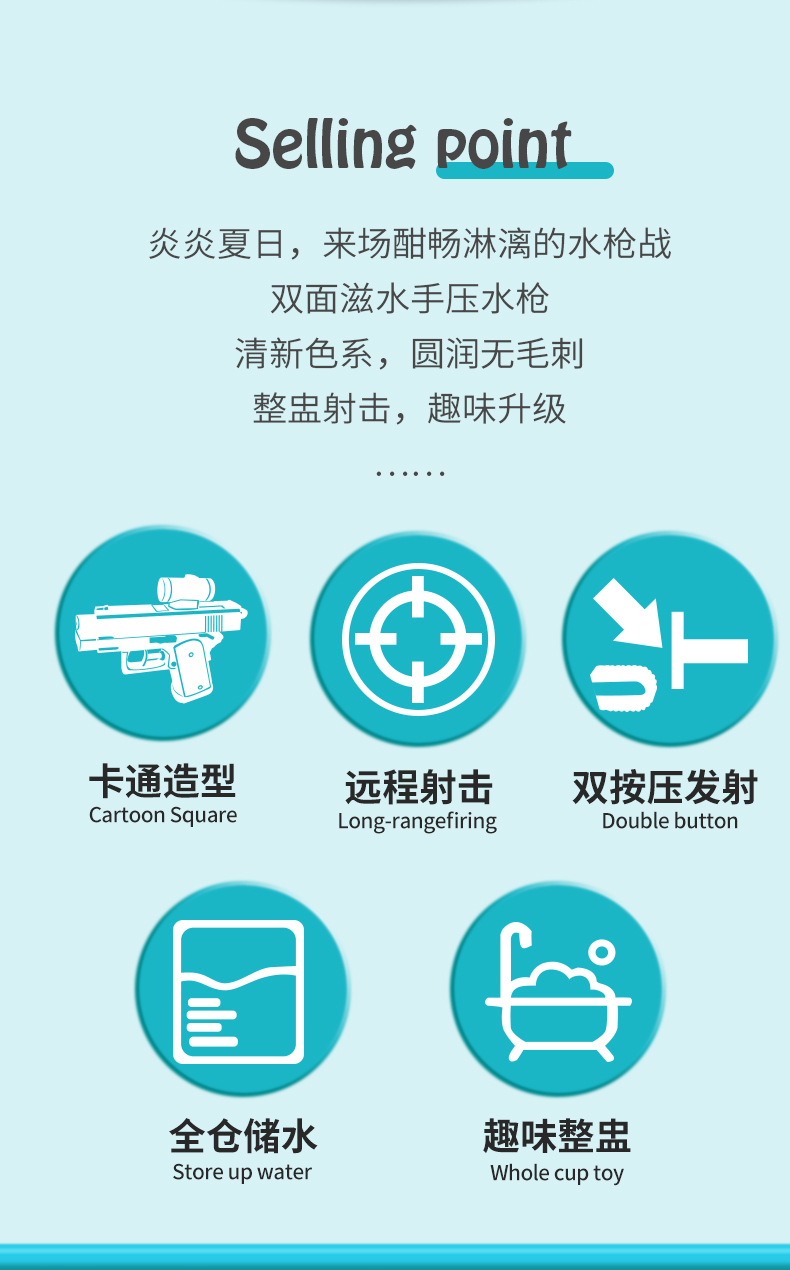 Bidirectional water spray prank toy gun, pink, blue and white water gun, silicone, kneading, handcrafted, fun and interesting children's toy small commodity