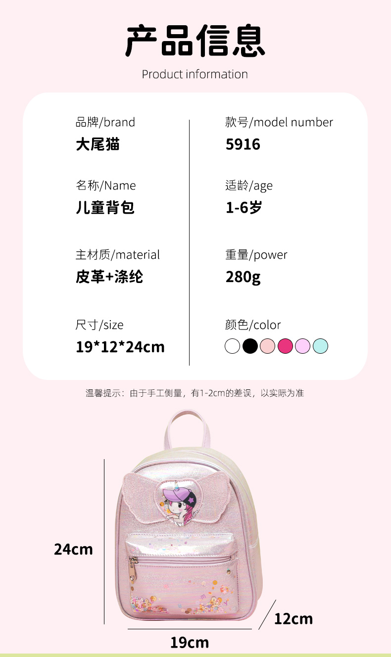 Big-tailed cat cartoon, fashionable, casual, cute and adorable, kindergarten princess, girls' backpack, trendy children's bag, girls' backpack, mini bag, girls' backpack