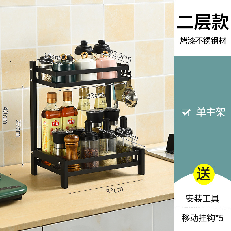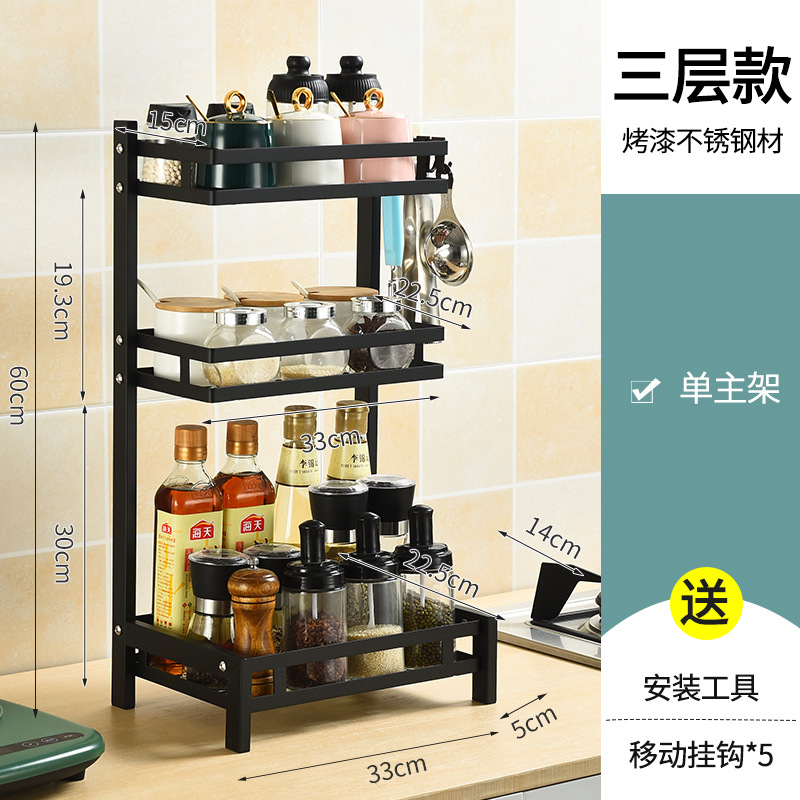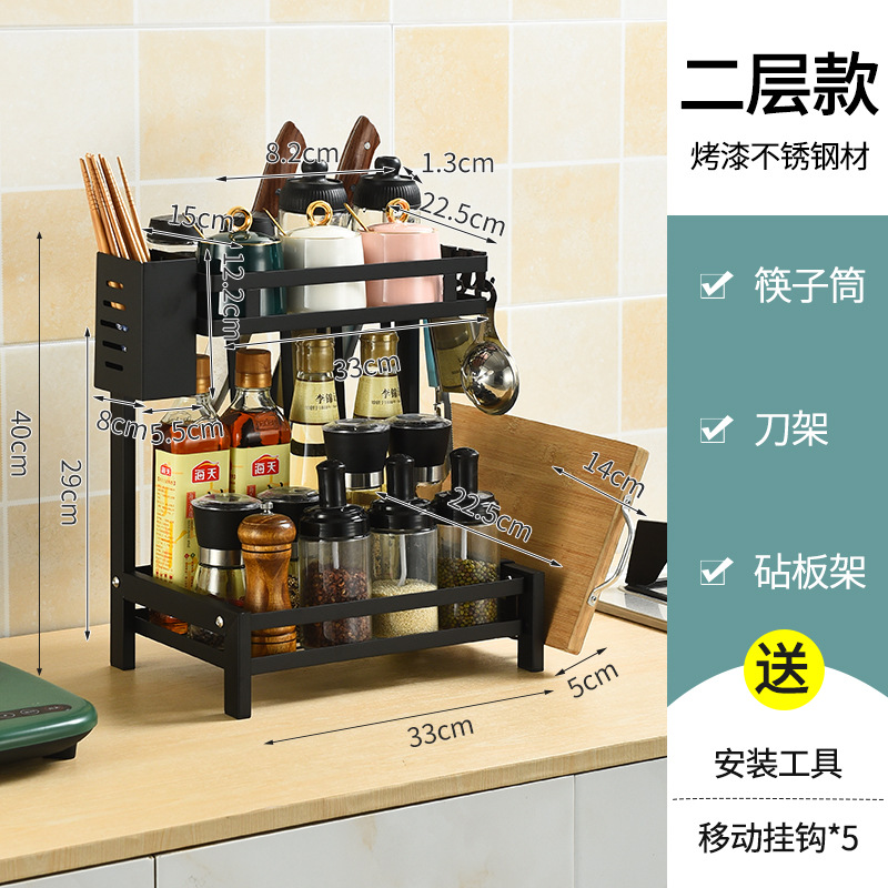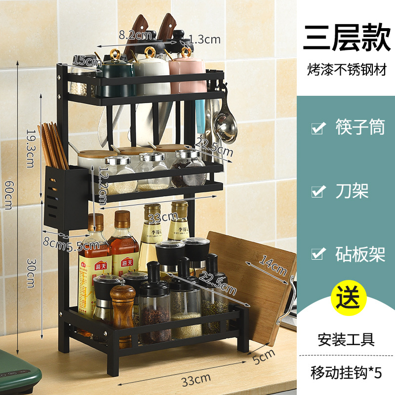Black kitchen seasoning rack without drilling, knife rack, floor-standing multi-layer storage rack, chopstick holder, cutting board rack