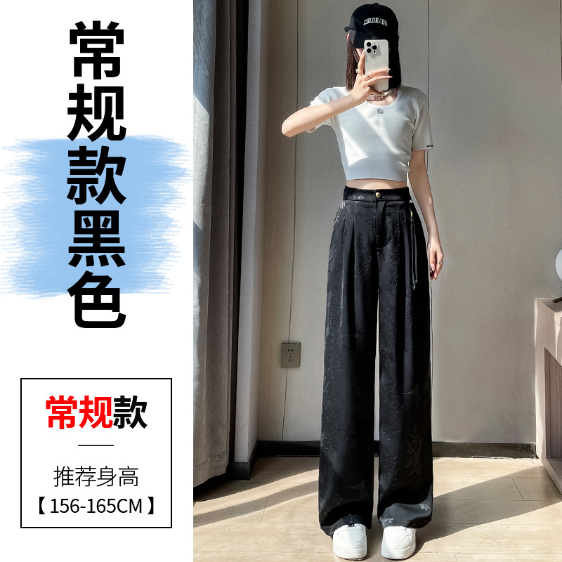 Black new Chinese-style jacquard satin wide-leg pants for women's spring and summer, thin high-waisted straight-leg narrow ice silk suit pants