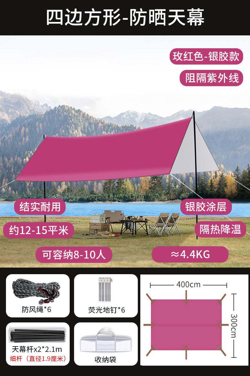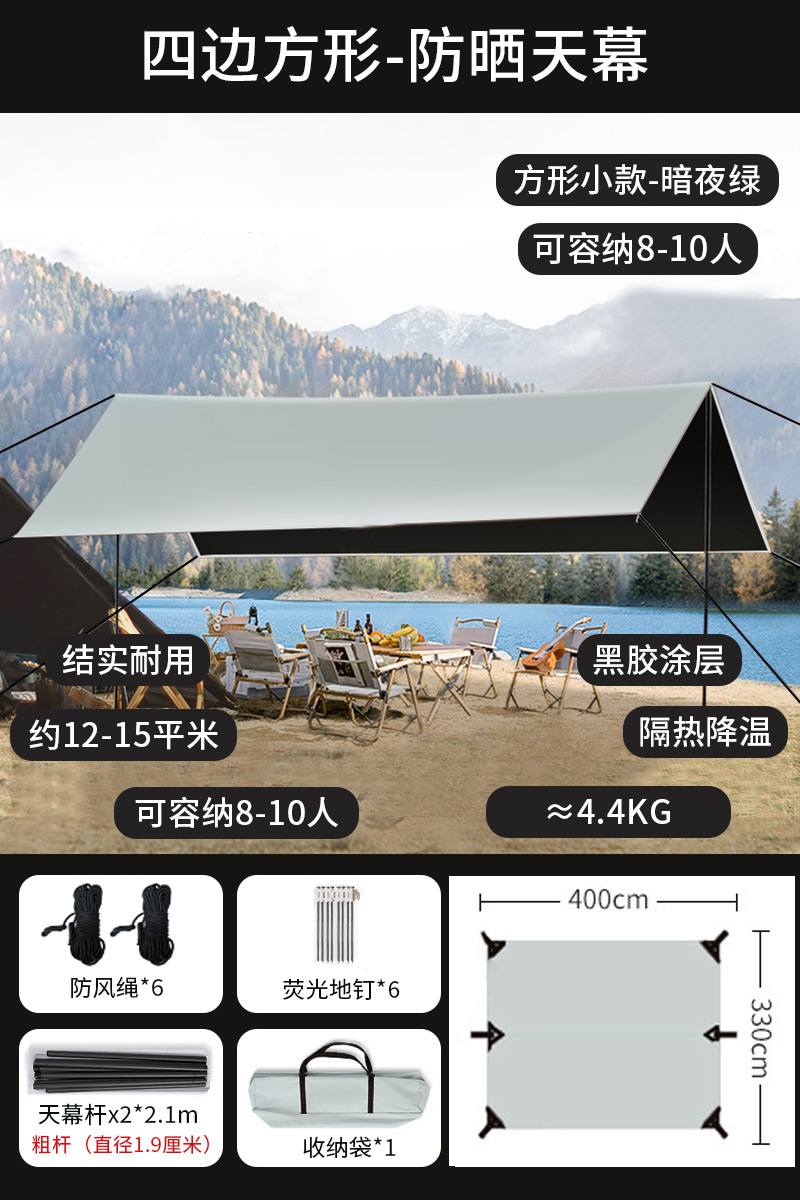 Black rubber canopy fabric, campsite sunshade fabric, outdoor products, camping tent wholesale, portable sun protection tent, camping