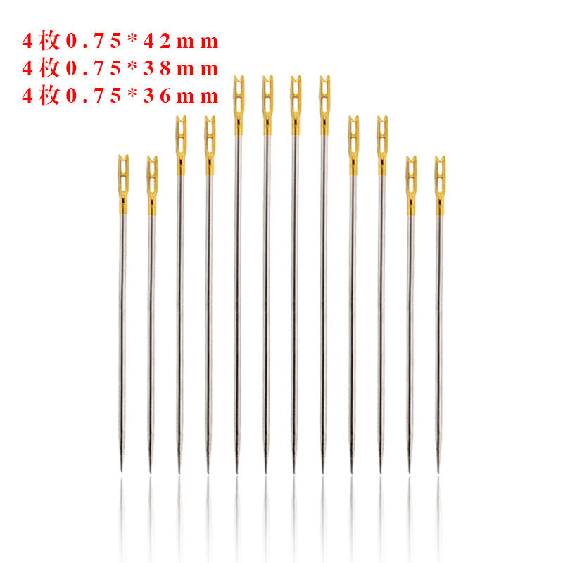 Eight gold-tipped 38mm long small hole needles