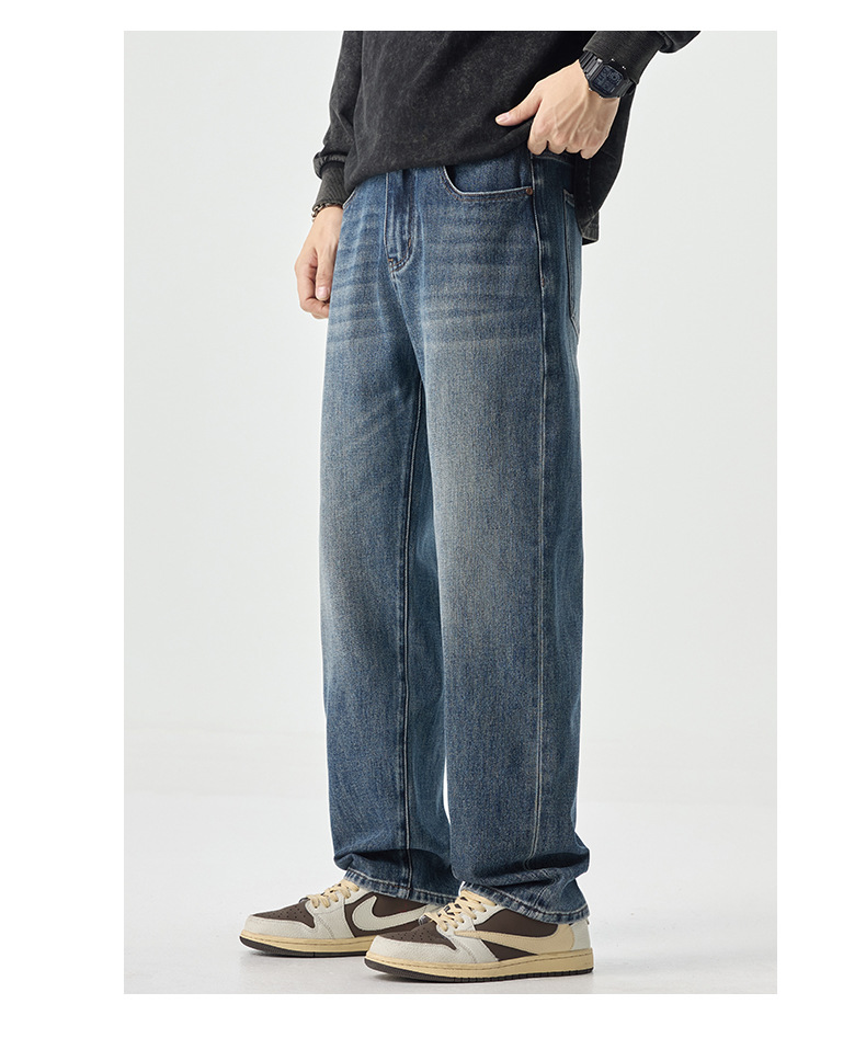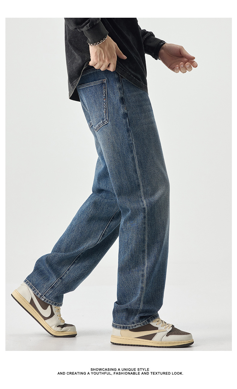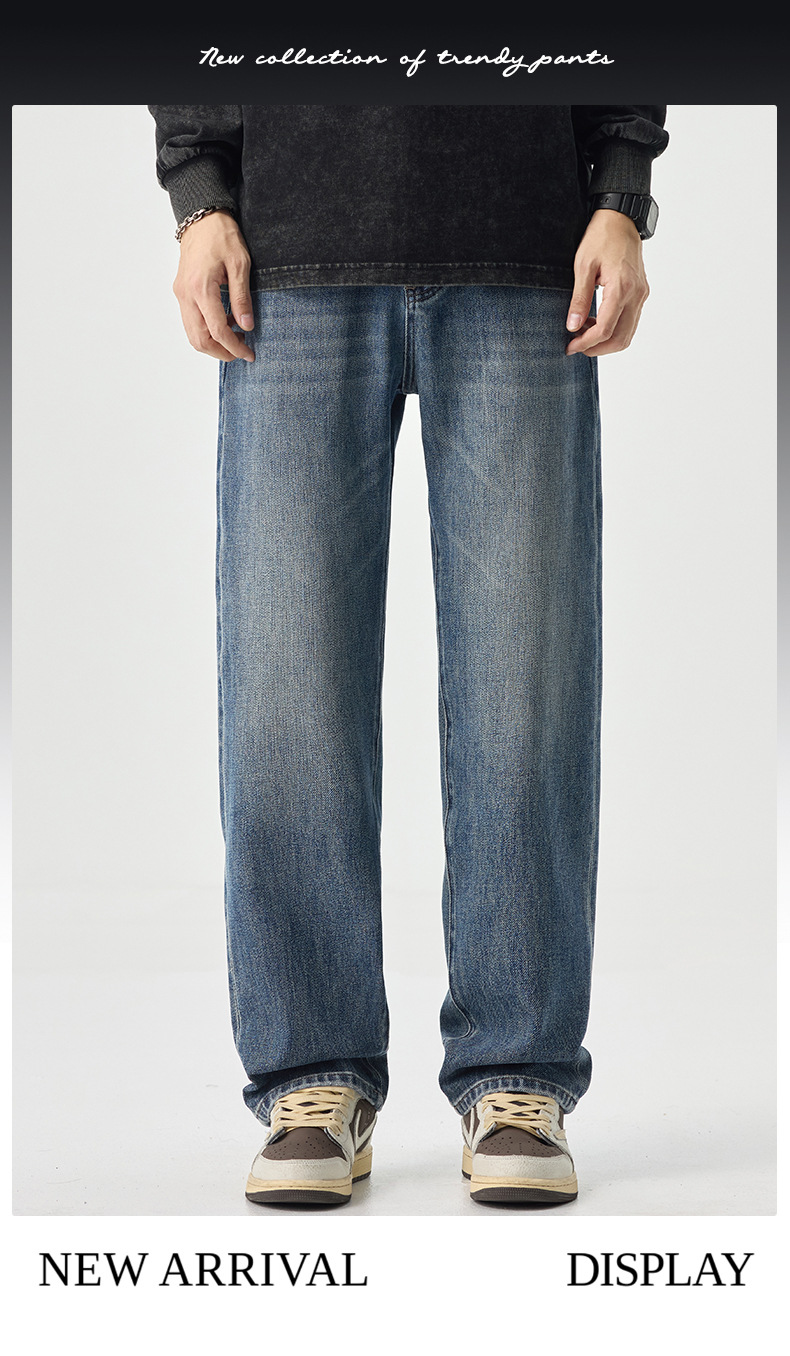 Blue four-sided stretch straight-leg jeans for men Spring/Autumn 2026 new style American loose wide-leg men's pants