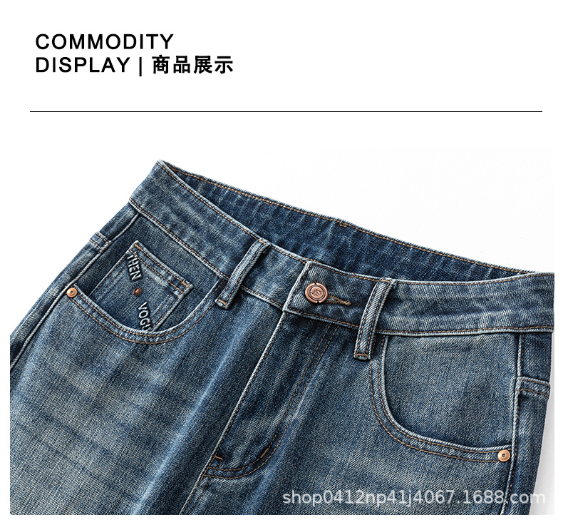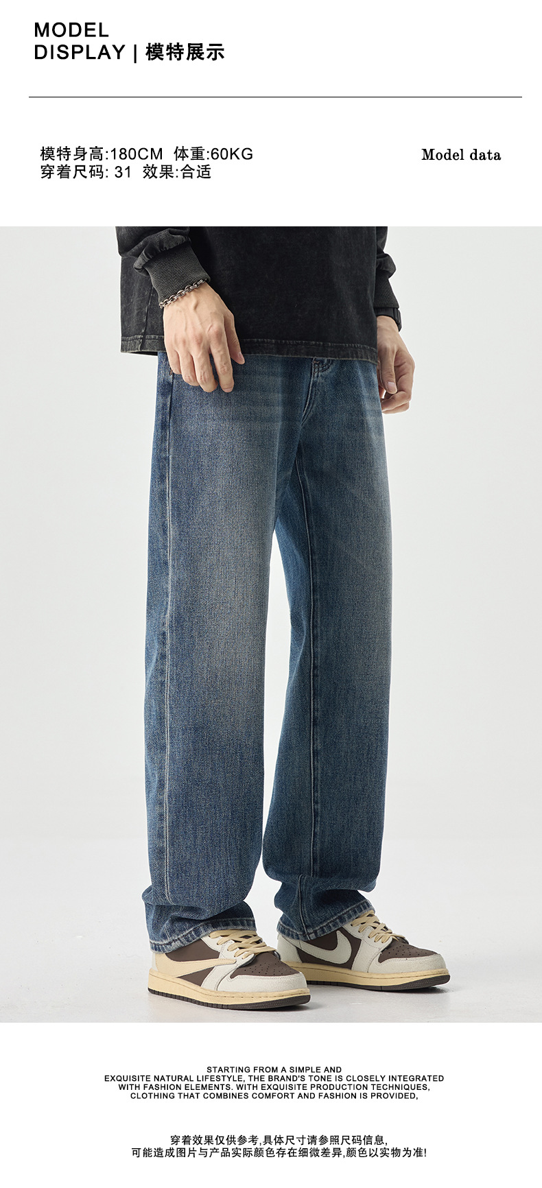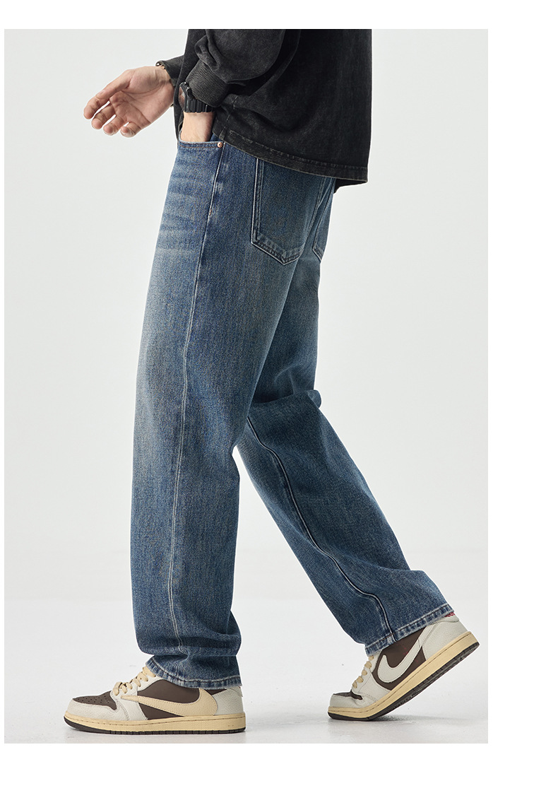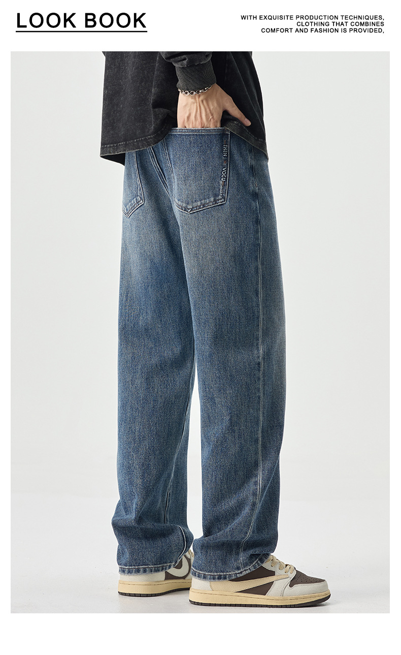 Blue four-sided stretch straight-leg jeans for men Spring/Autumn 2026 new style American loose wide-leg men's pants