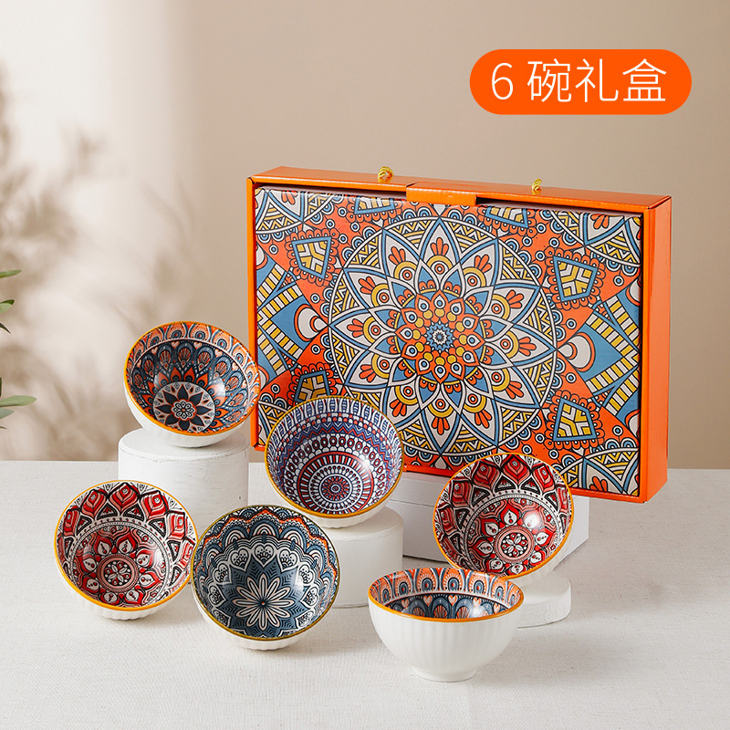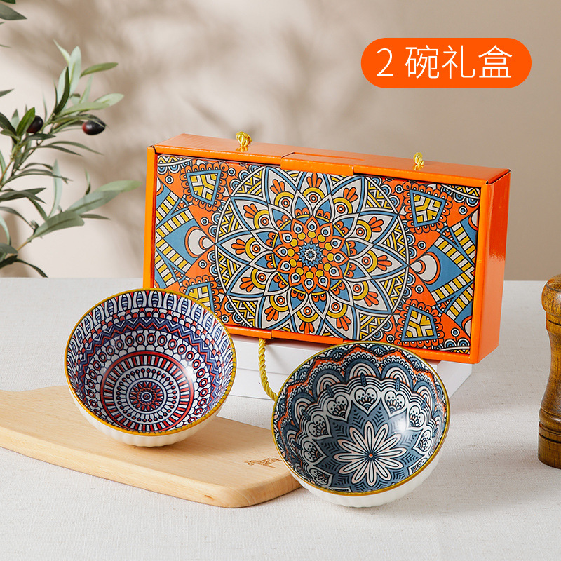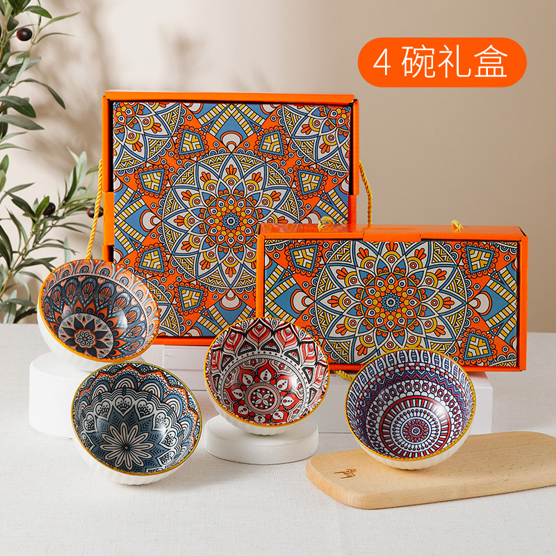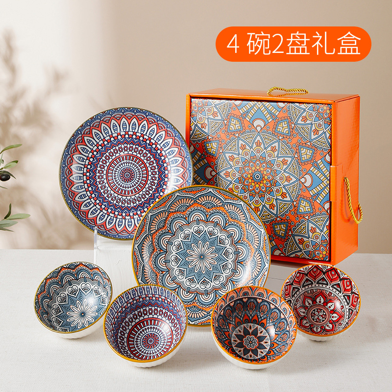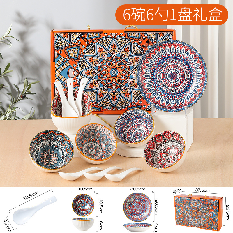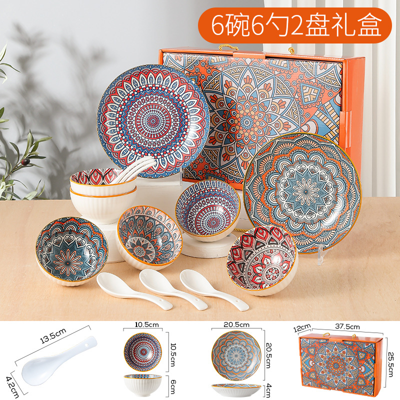 Bohemian-style ceramic bowls, plates, spoons and tableware gift box set event hand-mixed gifts can be printed with LOGO