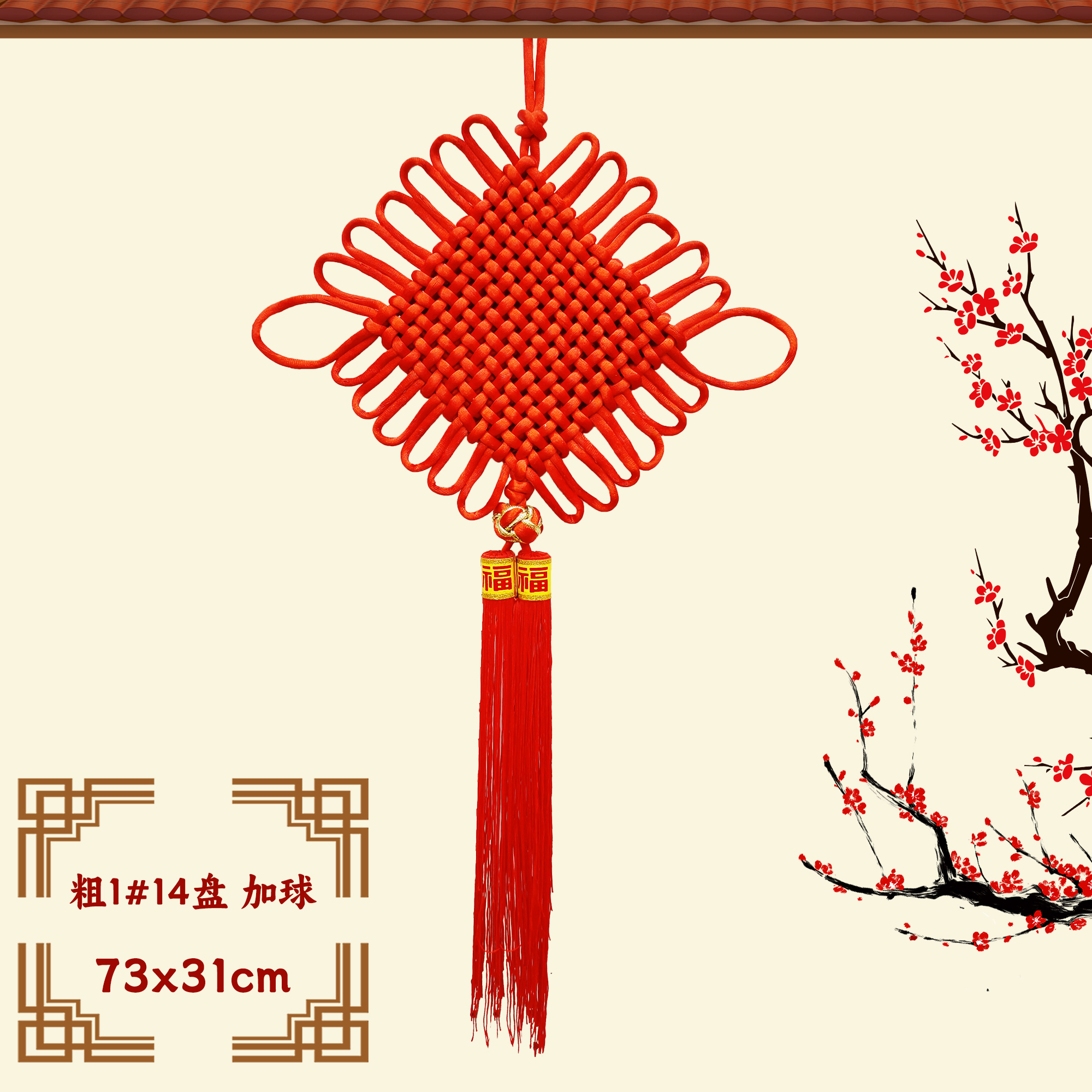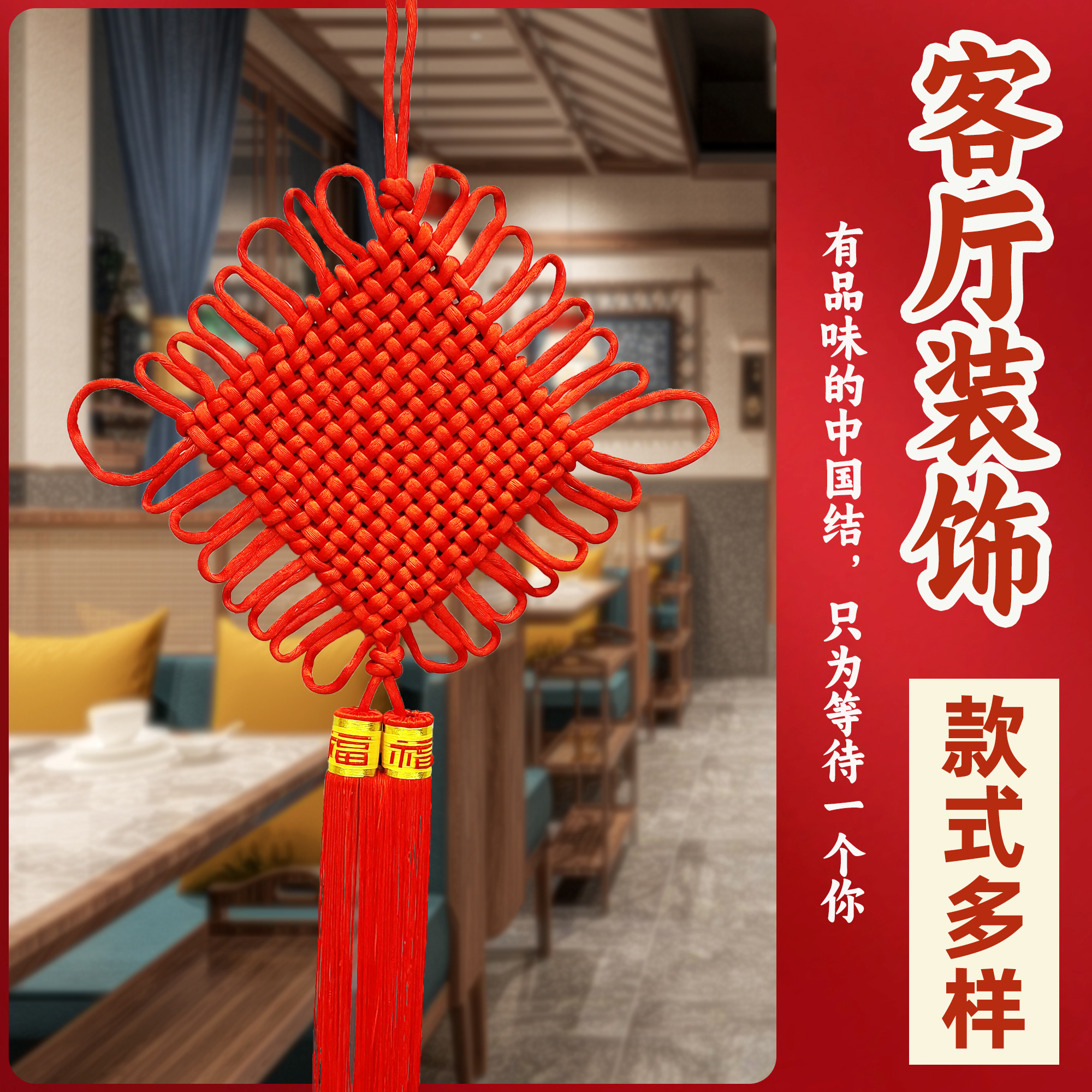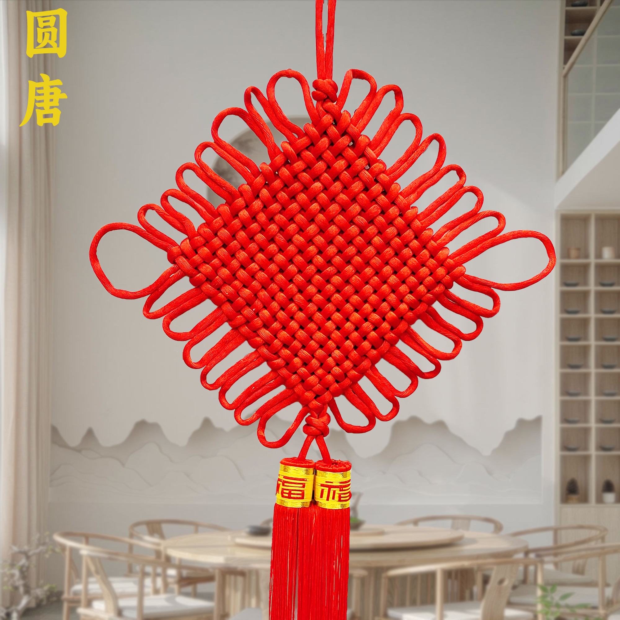 Bold red Chinese knot pendant, hand-woven peace knot decorative pendant, "Fu" character ear, living room, bedroom, door and window background hanging decoration, New Year decoration for new house, entrance hall, high-end moving background, bold No. 1