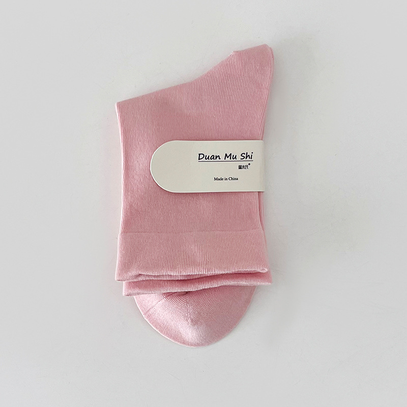Boneless anti-pilling socks for women, spring and summer style, pile socks, solid color mid-calf cotton socks, women's growth socks, loose postpartum socks