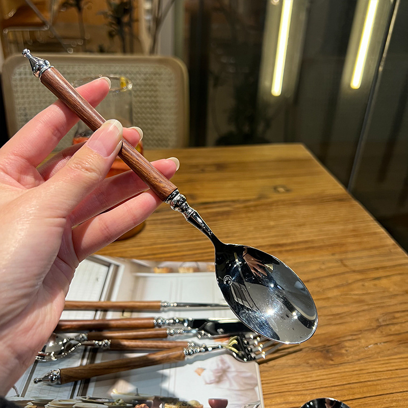 【 Boss's personal signature, beautiful 】【 Rare Rosewood Material 】 304 stainless steel Western tableware set with wooden handle