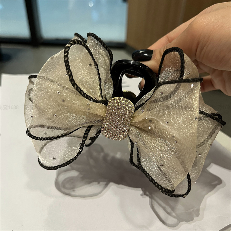 Bow hair clip, new Korean version lace hair grip with diamond hair accessory, simple headwear, back of the head updo hair clip for women
