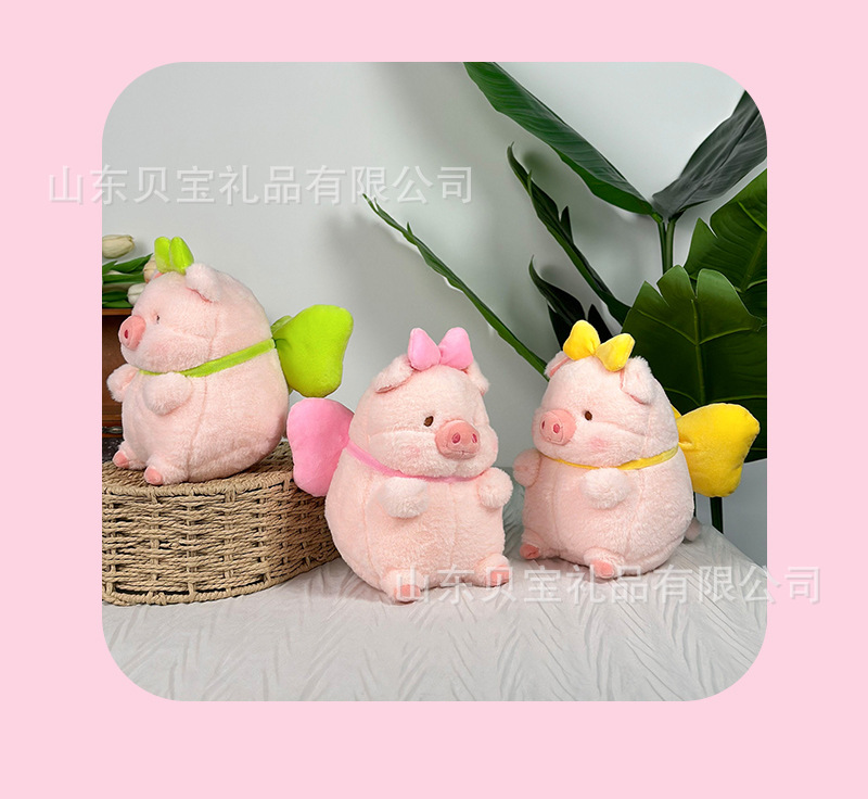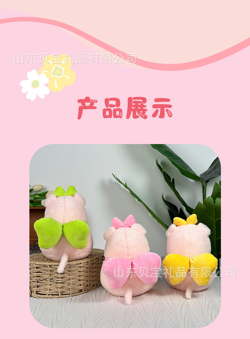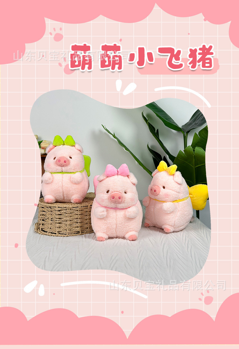 Bowknot little pink pig plush toy, cute Lulu Pig doll, doll, children's birthday gift, bedpress doll
