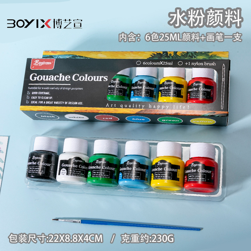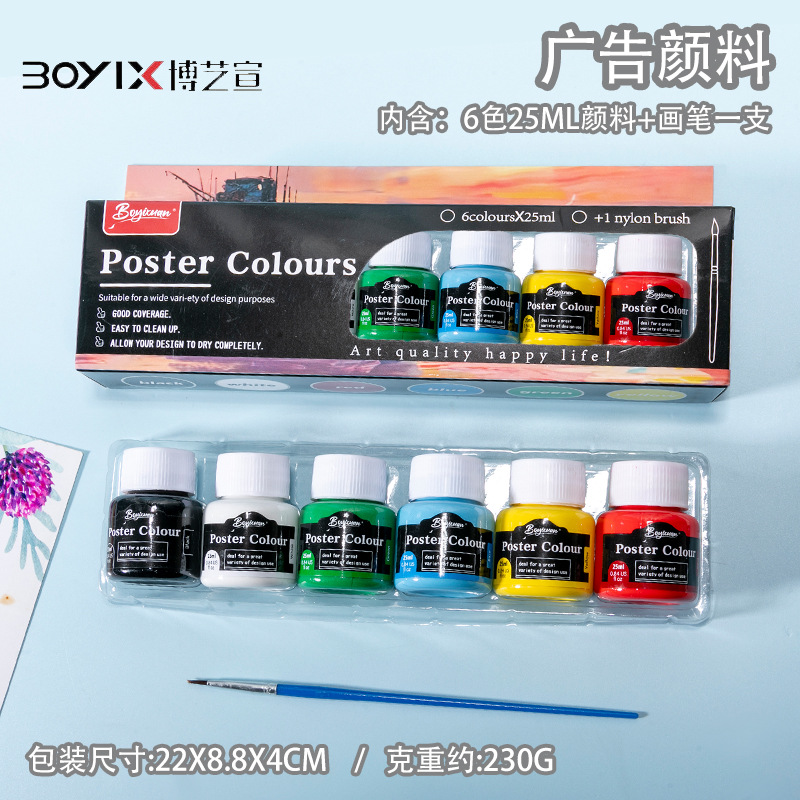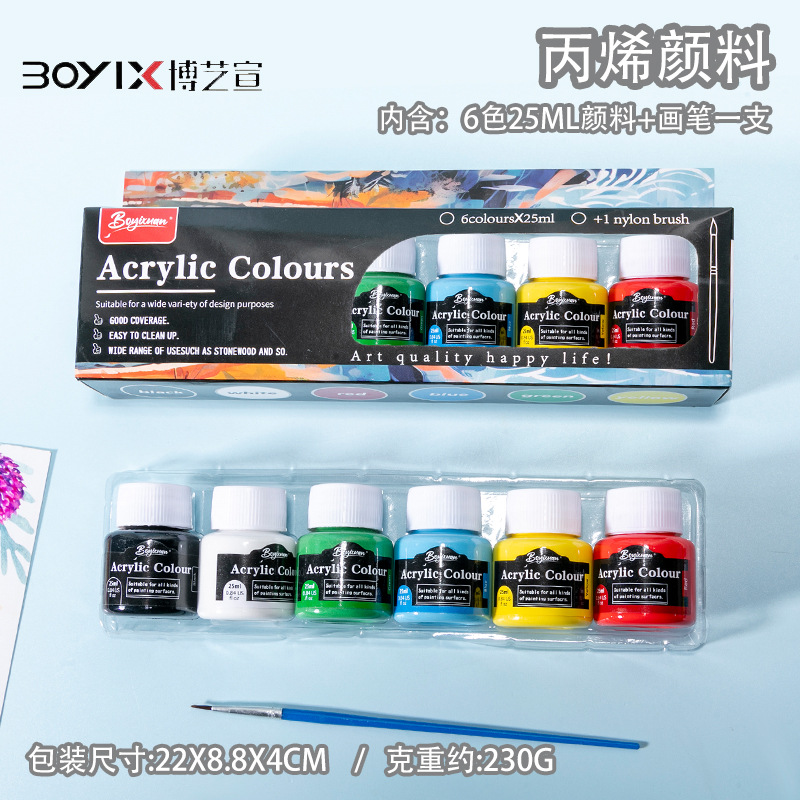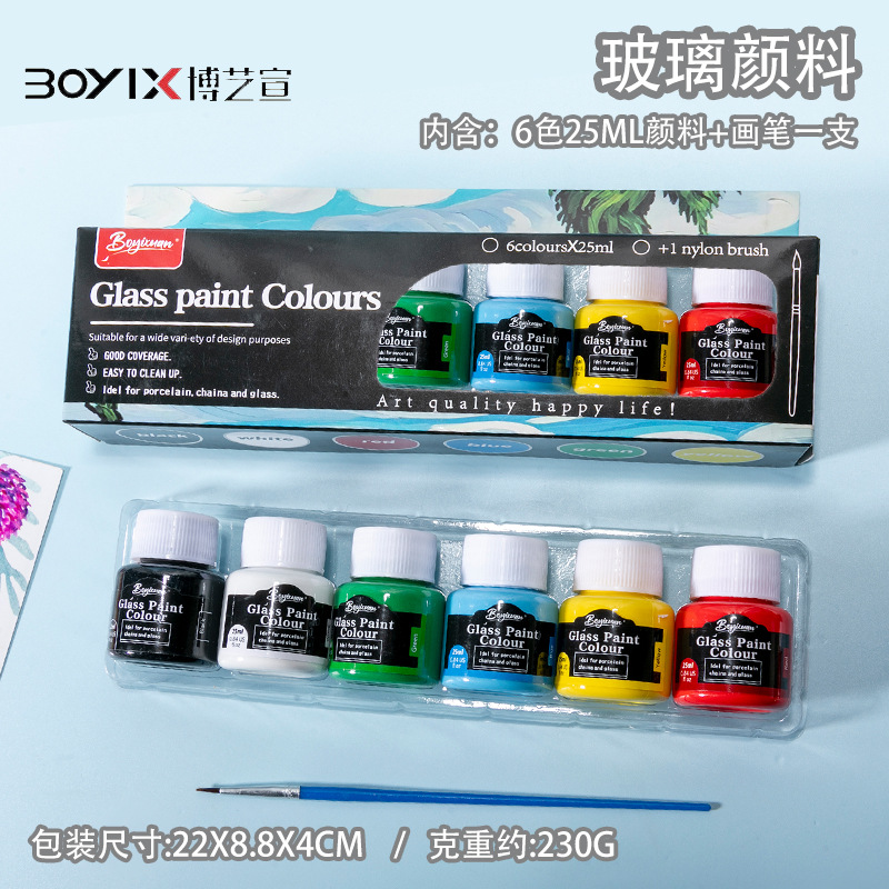 Boyi Xuan 6-color 25ml paint set, glass textile diy Advertising Graffiti Painting Watercolor Gouache Acrylic paint