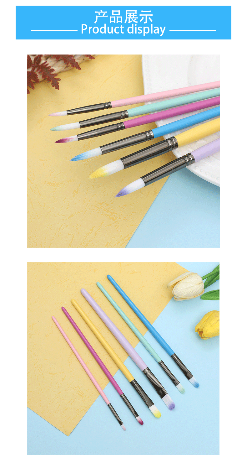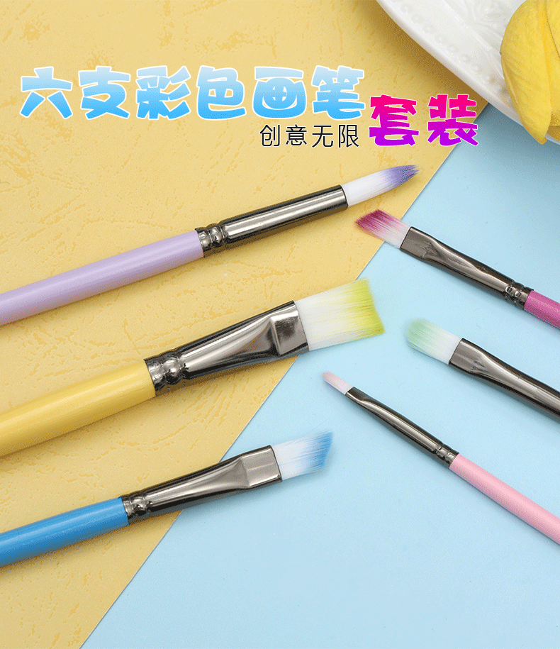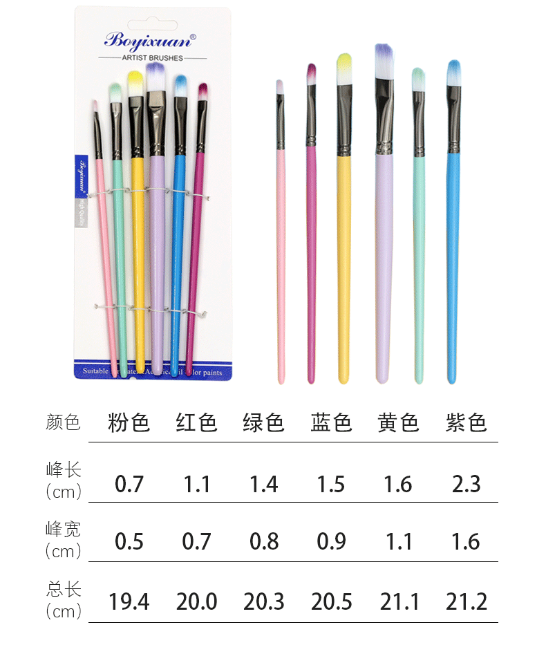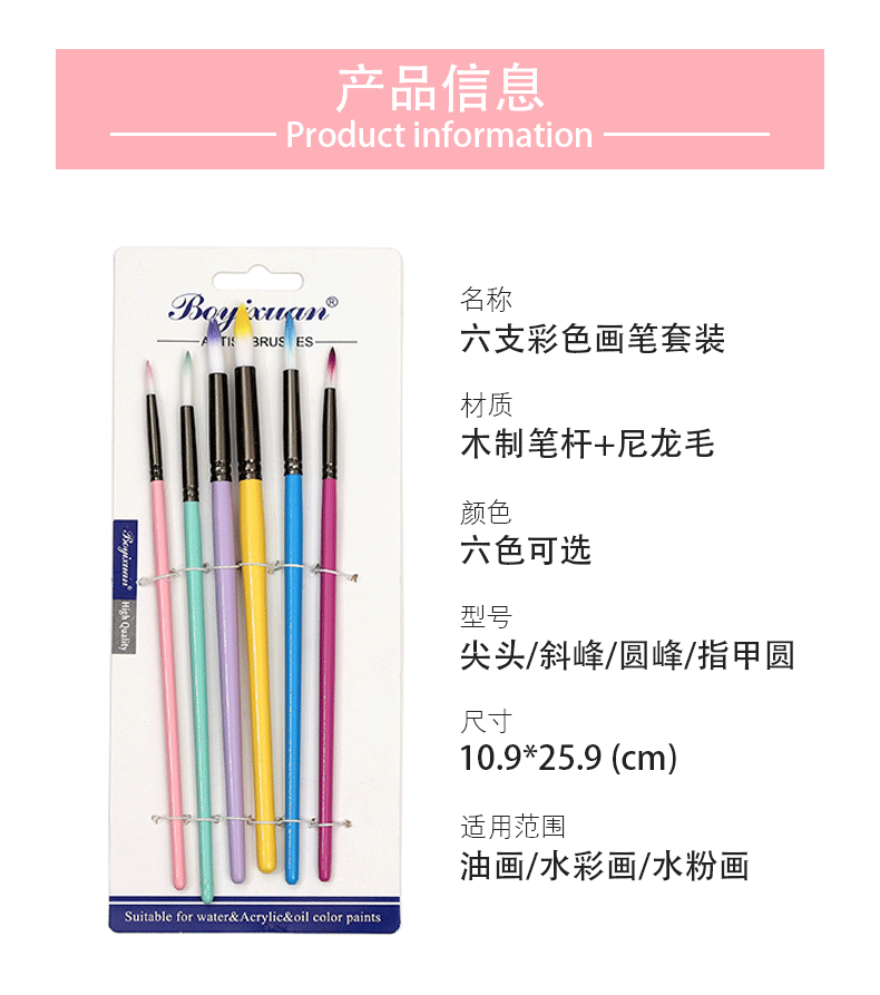 Boyi Xuan's new wooden 6-tube painting set, nylon colored pen bristles, diy art graffiti watercolor children's brushes