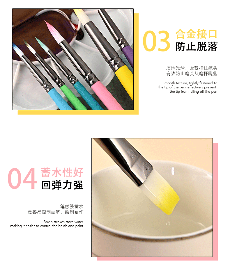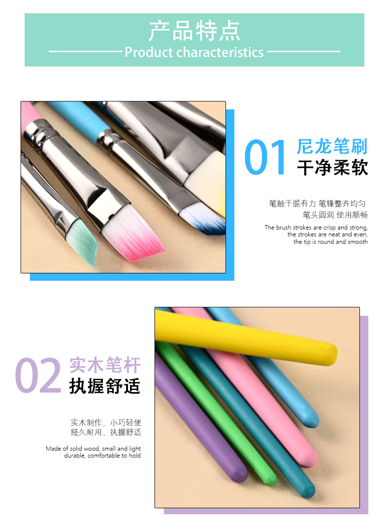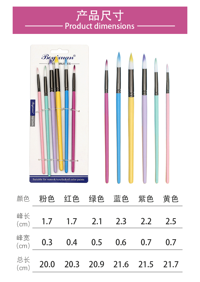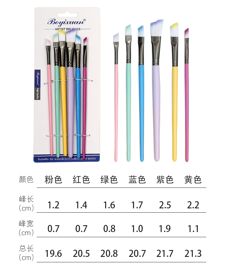 Boyi Xuan's new wooden 6-tube painting set, nylon colored pen bristles, diy art graffiti watercolor children's brushes