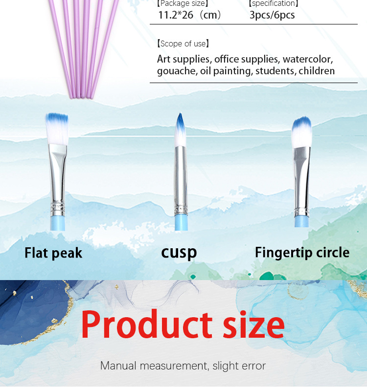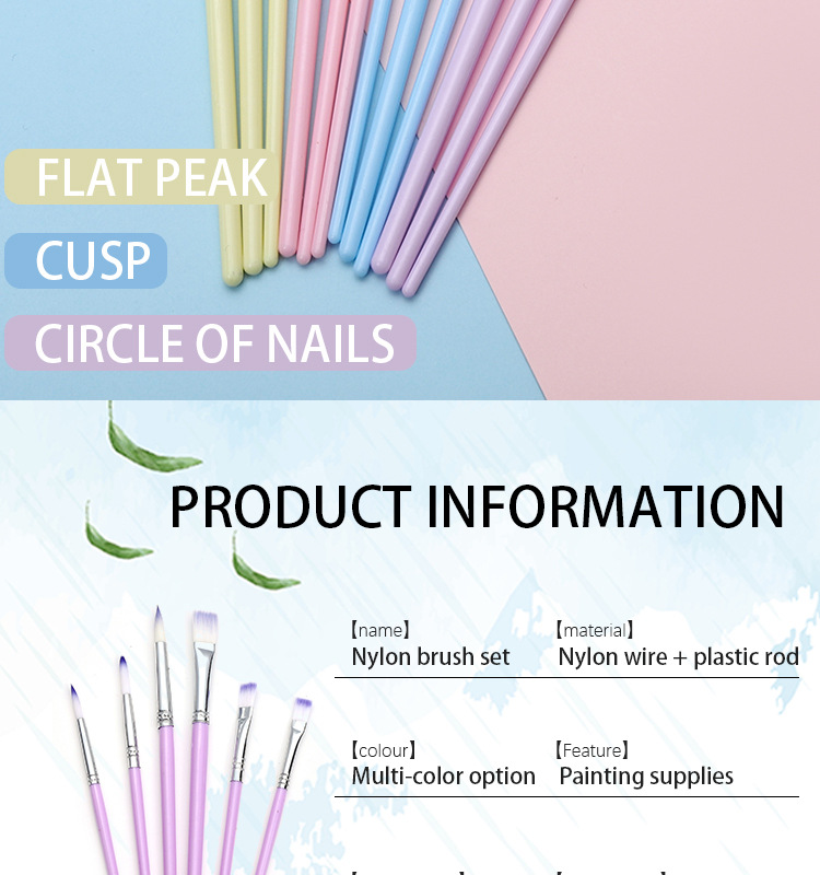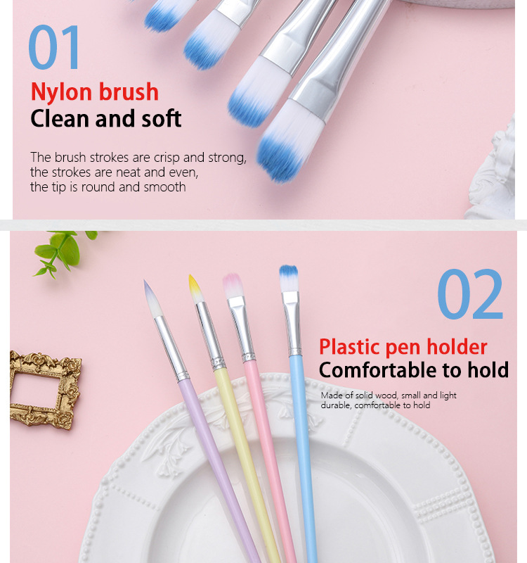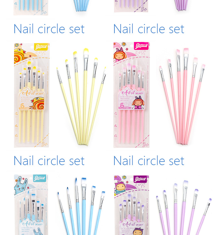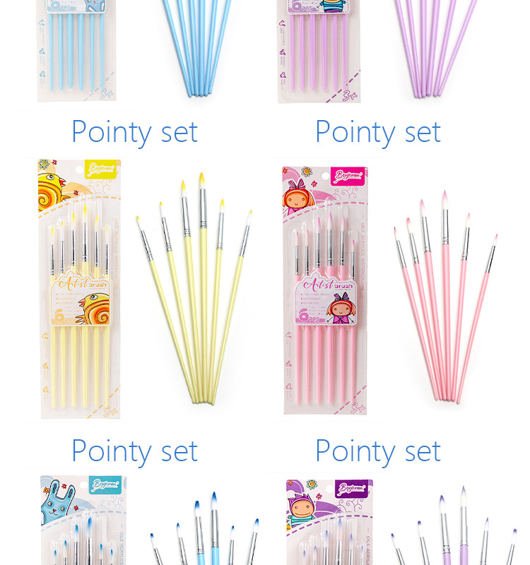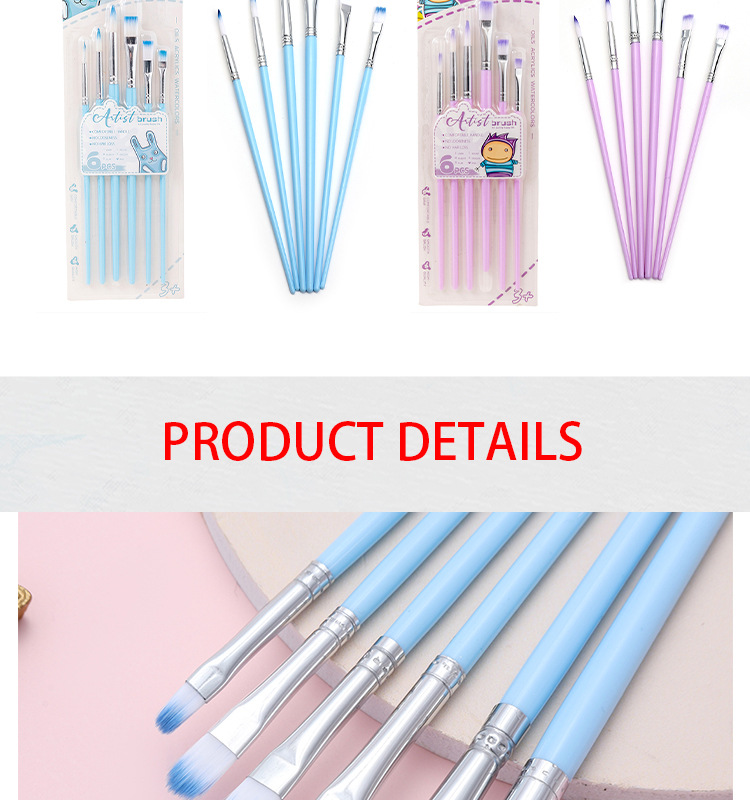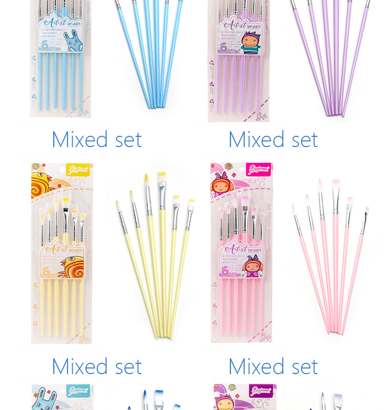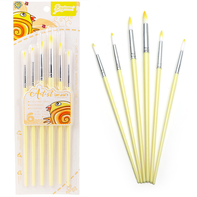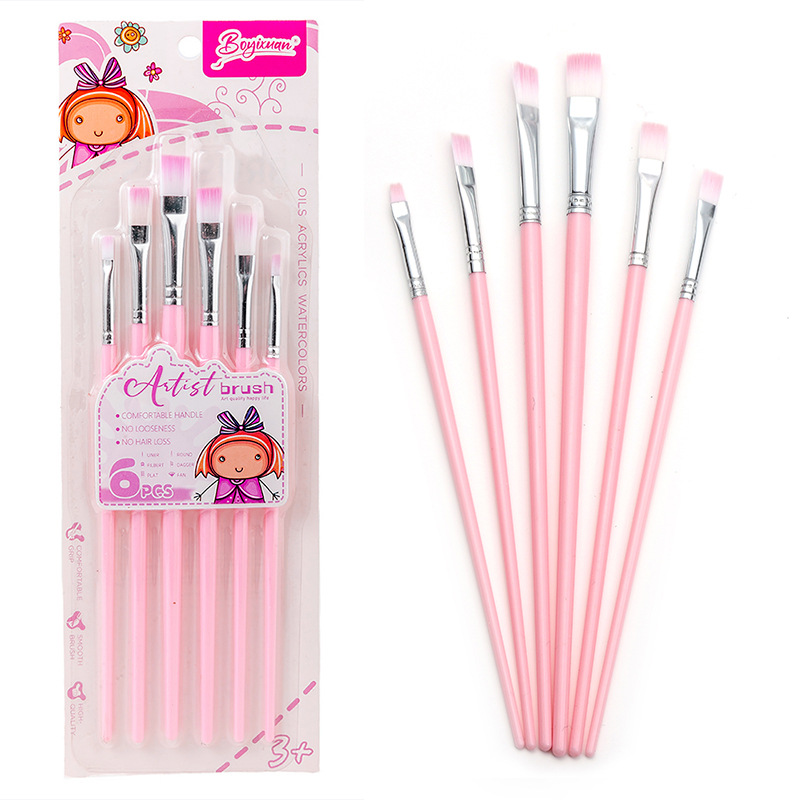 Boyi Xuan Xuan Card 6-pack macaron-colored nylon brushes for children's painting and art diy oil painting Acrylic brushes