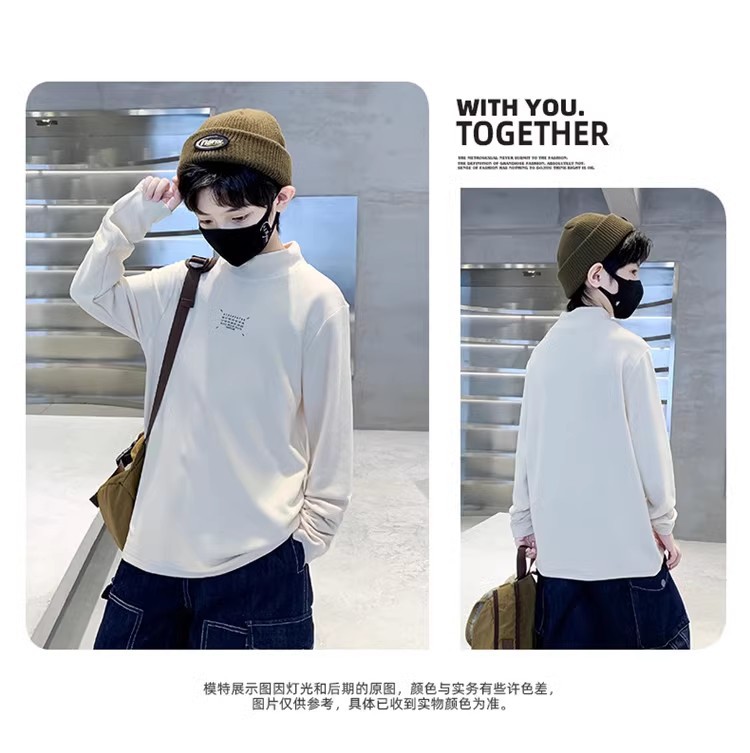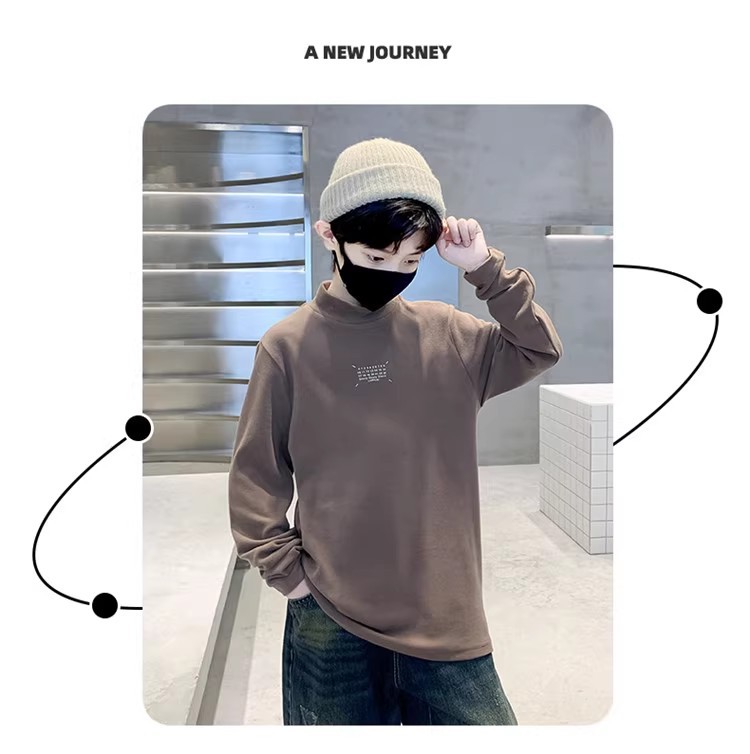 Boys' semi-high neck base layer, autumn and winter children's wear, winter warm top, big boy mid-neck velvet inner layer