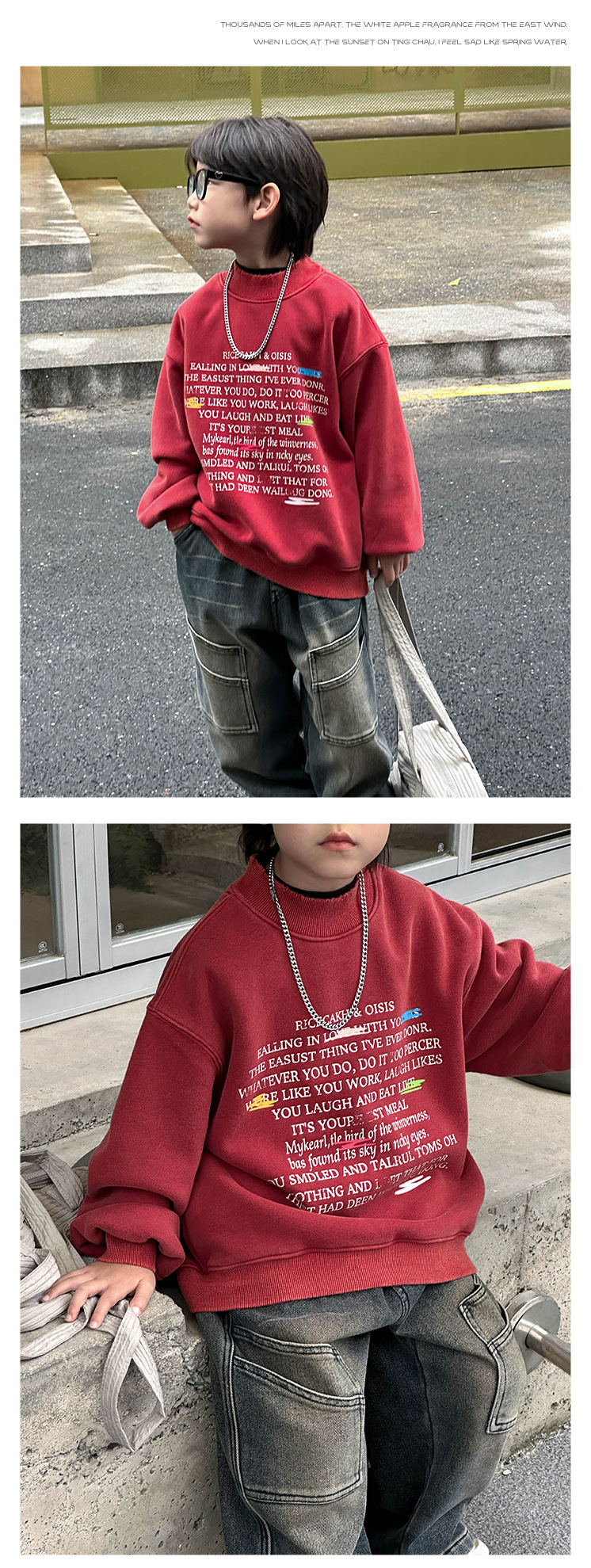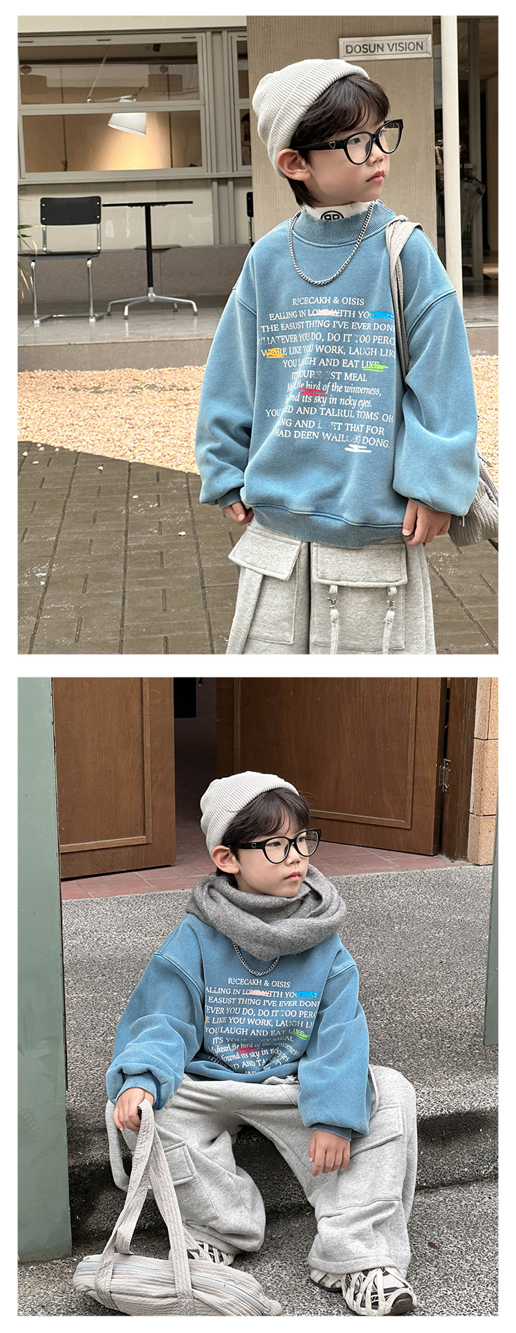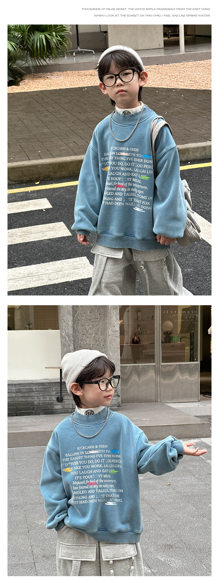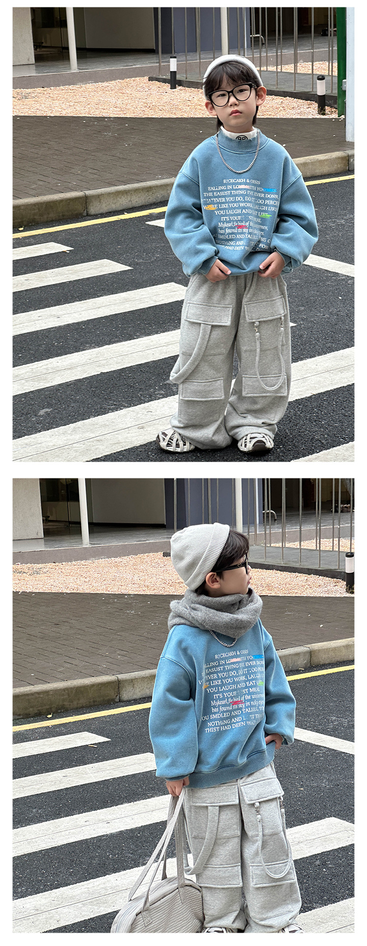 Boys' stylish hoodie 2024 Winter new Children's Korean-style fleece jacket, small children's printed round-neck pullover