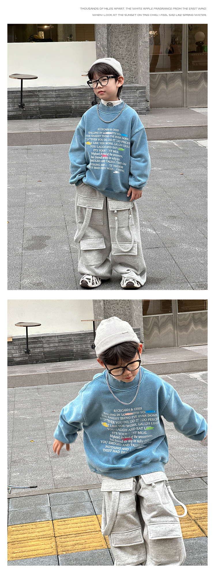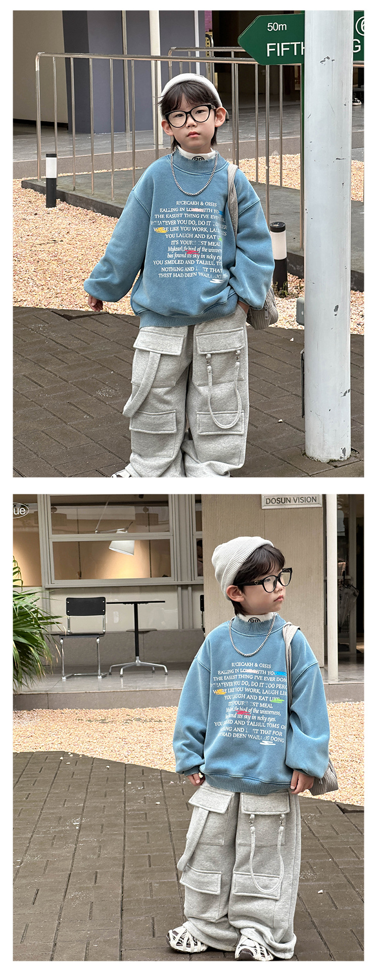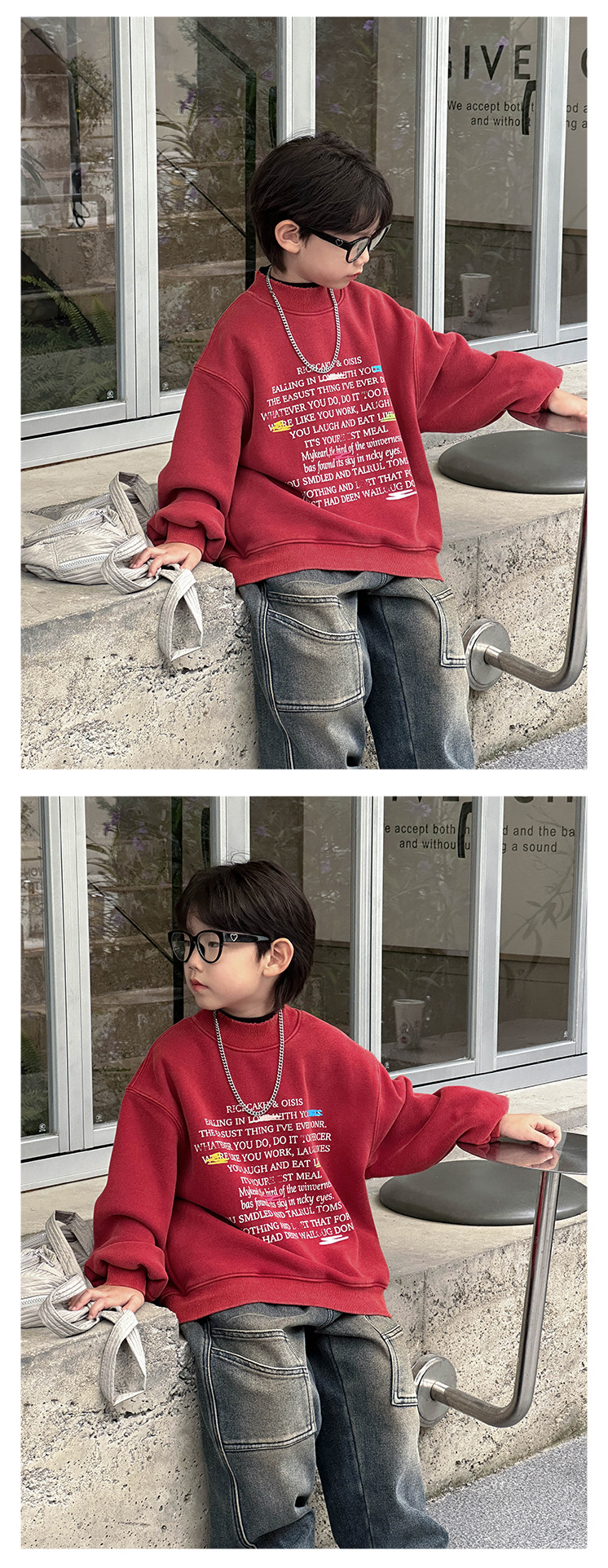 Boys' stylish hoodie 2024 Winter new Children's Korean-style fleece jacket, small children's printed round-neck pullover