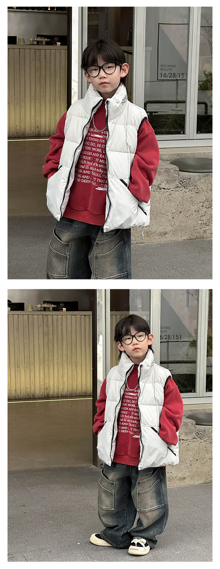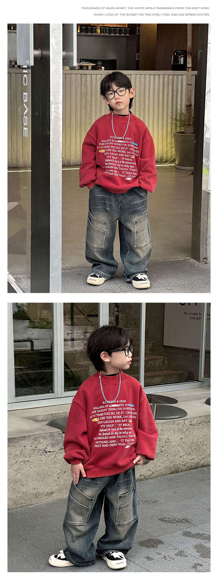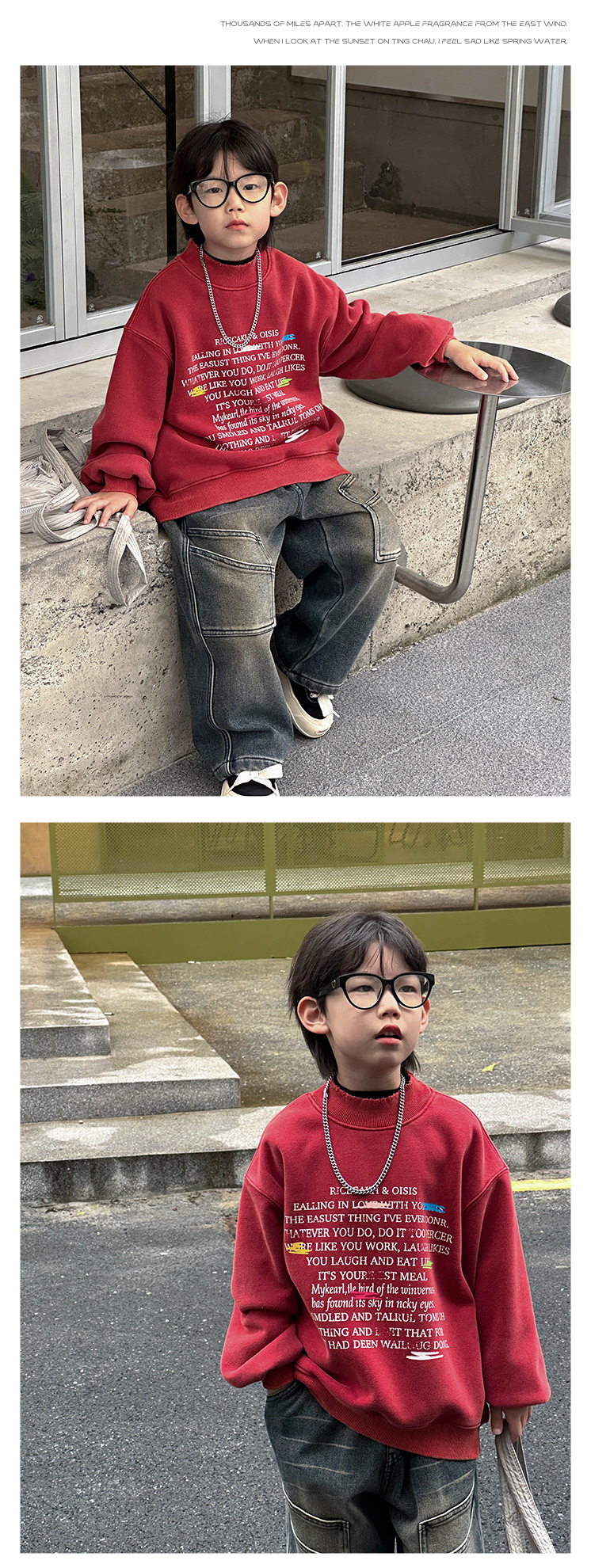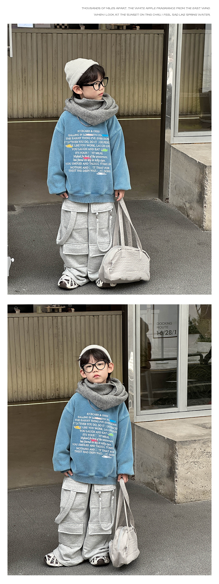 Boys' stylish hoodie 2024 Winter new Children's Korean-style fleece jacket, small children's printed round-neck pullover