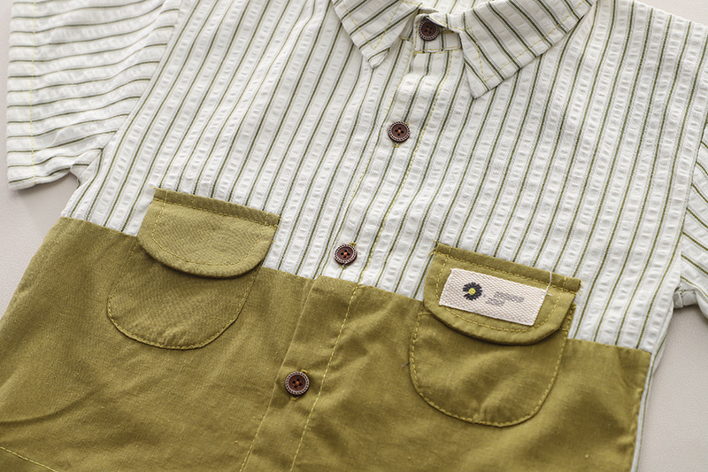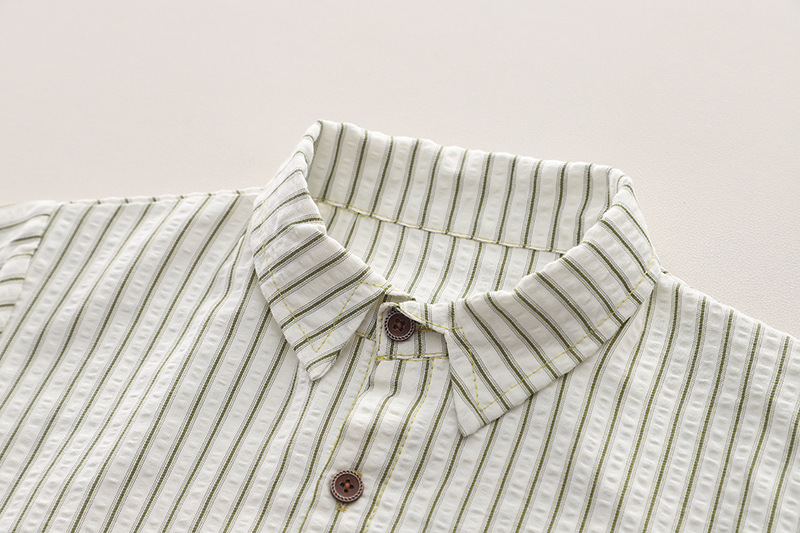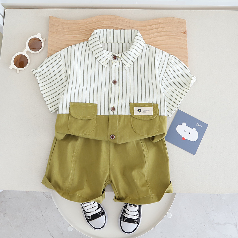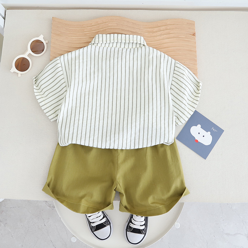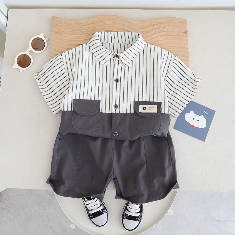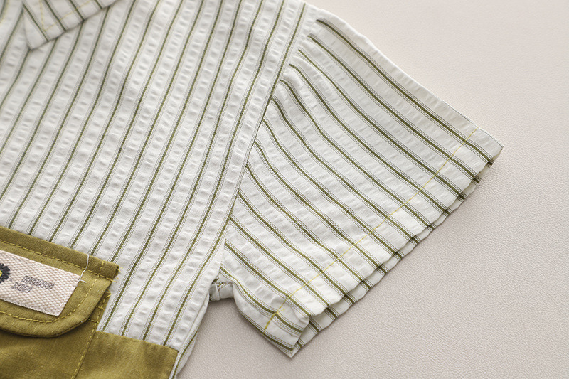 Boys' summer shirt set, stylish short-sleeved lapel striped shirt for kids, casual two-piece set, trendy
